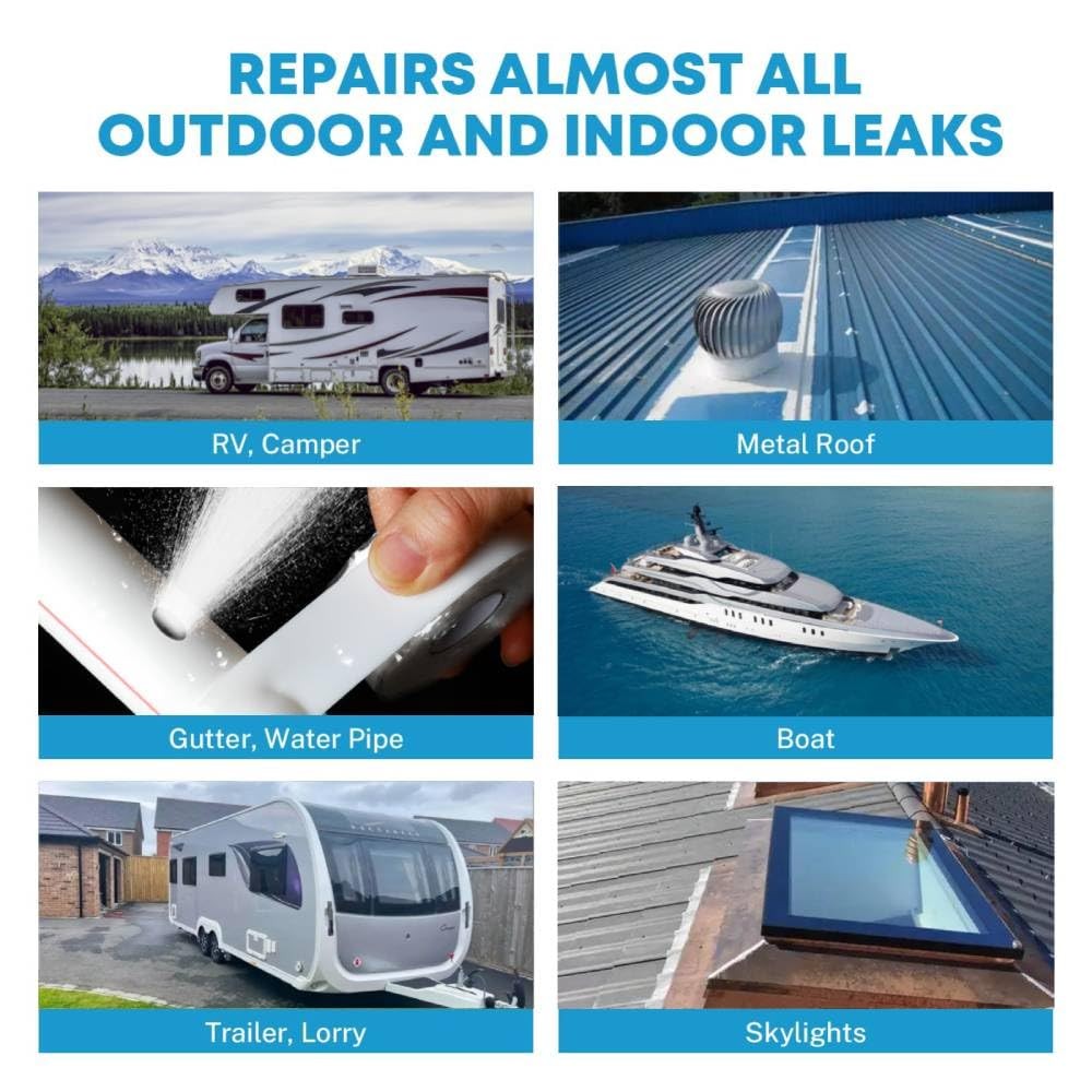 Made of high-quality butyl, this tape can resist leaks from bad weather such as rain, snow, wind, etc., protecting your RV from leaks. The waterproof strong tape can resist UV rays, moisture, steam, corrosive chemicals and other leaks, protecting your RV from extreme weather. It is widely used for sealing RV, roof, windows, doors, wooden furniture, metal, water pipes, motor homes, trailers, fifth wheels, airstreams, trucks, buses and more. High-quality butyl sealing tape: 4 inches wide and 50 feet long. It is windproof, rainproof, UV-resistant, and can be used in multiple scenarios. Easy to install: The characteristics of super strong adhesion and flexibility enable you to install it on most surfaces, preferably on flat, curved or corner surfaces. RV waterproof sealant: It is elastic, breathable and will not shrink, and can form a strong seal with the edge of the roof and vents to prevent leaks Tape: Made of high-quality butyl, it can resist leaks in severe weather such as rain, snow, wind, etc., protecting your RV from leaks. Mobile RV repair: Designed and manufactured for your RV repair, it can easily repair roofs, windows and doors to prevent leaks, and can also be applied to other roofs, metal buildings, trailers, drain pans, drain pipes, boats, etc.