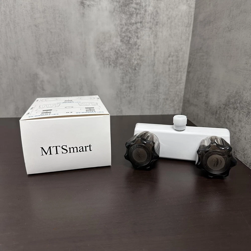 RV Shower Faucet, 4" RV Shower Faucet Valve Diverter,Camper Shower Faucet for RV/Motorhome/Trailer, Dual Smoked Acrylic Knobs Shower Faucet (White) [Choose Us] When you want to update your shower hardware, please choose our 4" RV Shower Faucet Valve Diverter for RV, camper, motorhome, travel trailers. Inside shower faucet or outside shower faucet. Features: 1.RV Shower Faucet is perfect suit for RV, camper, motorhome, travel trailers. 2.RV shower faucet with dual knobs to quickly adjust temperature and aerated water pressure. 3.Good size and classical design also fit the tighter spaces in outside and inside of RV shower. 4.Easy install faucet for rv on the inside shower or outside shower without a plumber. 5.Dual knob faucet comes with a durable easy-to-turn design, and provides a desired smooth turning action and unwanted dripping. Specifications : Works on any 2-hole, 4” center to center installation. The valves are 4 inches apart for stander rv bathroom.The diverter accommodates all standard shower hoses. : If you have any question about the shower faucet for rv, please e-to us. Every shower faucet for rv be backed 24 mouths ,by it confidence. Package Include: 1x RV shower faucet 2 x Installation nuts and washers 【Perfect rv shower faucet :】This shower faucet is an easy install when you want change your old RV shower faucet.Easy install shower faucet for rv without plumber.This faucet is UPC and CUPC Certified. 【Indoor or Outdoor Use:】This 4" RV shower valve diverter suit for rv/ camper/ motorhome/ trailer/boat. It is a shower valve diverter for Indoor bathroom shower faucet.Indoor or outdoor shower faucet. 【Good Size:】This rv camper shower faucet works on any 2-hole, 4”center to center installation. this diverter accommodates all standard shower hoses.It was made with a recreational vehicle’s space in mind,there is enough space in your shower toaccommodate this faucet. 【Safe to Use:】 This RV shower faucet with dual smoked acrylic knobs operation. The dual knobs faucet are easy to turn and work smoothly which provide precise temperature control and aerated water pressure.Be safe to use it. 【Package Include: 】You will get a RV shower faucet valve diverter, every diverter is backed by 24-months . Buy it now to update your shower hardware.If you have any question, we will stand by.