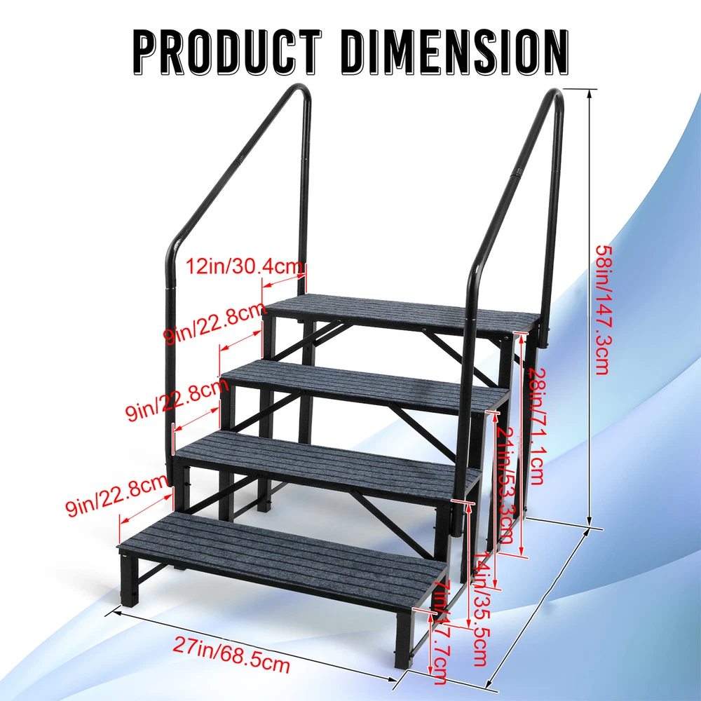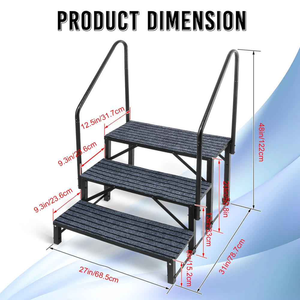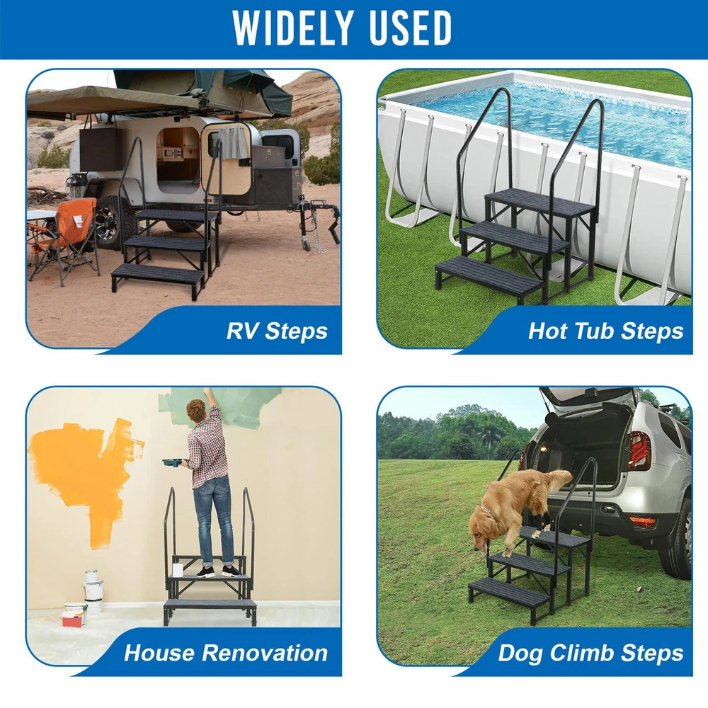 Store category Sign Up Now ! You may also like Product Description Bullet Points: Reinforced Reliability: Crafted with carbon steel, our RV steps feature handrails securely anchored by robust screws, progressively ensuring reliability, peace of mind, and augmented security for your convenience. Wide to Application: With its practical design, RV steps with handrail can be used in various environments, making it perfect for temporary use during renovations or as a permanent fixture in your backyard, dock, or home. Comfort-Focused Design: Our RV steps with handrail feature a height specially designed to reduce pressure on your back and knees. The ergonomic design provides a comfortable and convenient experience for everyone. High-End Material: Crafted from robust alloy steel and coated with a durable powder finish, our RV steps with handrail guarantee secure access for two adults and furry friends weighing up to 400 pounds. Built tough to withstand the rigors of daily use. Simple Installation: Install your RV Steps with Handrail in just 20 minutes with the included comprehensive manual. The polished black finish is easy to clean, ensuring effortless maintenance for years. Ideal for all kinds of outdoor use, from campers to hot tubs, swim spas and more. Our stairs feature an ergonomic design for ease of use and have a weight capacity of up to 400 pounds. With a comprehensive installation manual, just two people can assemble them in as little as 20 minutes. Specification: Features: Improve safety and convenience, versatile and convenient, sturdy construction. Packing List: RV Steps with Handrail*1pcs Note: Due to different lighting and screen settings, the item color may be slightly different from the picture. Due to different manual measurements, please allow a 1-2cm difference in size. Payment Delivery details Terms of sales About us Feedback & DSRs Payment Before you palce an order, please kindly make sure that you have a paypal account. We accept PAYPAL payment only. Payment should be completed within 2 days after auction closed, or unpaid dispute will be filed for an closing auction. An unpaid case will be filled after 4 days. Delivery details We ship to your eBay address. Each package will be shipped to US by UPS Regular Parcel with tracking number. Please check your shipping address carefully before checkout, it can't be changed if order completed. All items will be shipped within 1-2 business day upon receipt of payment.Orders placed on weekend will be shipped within 3 days. If you do not receive your item in 7-10 business days.please contact us immediately for further assistance. We will be responsible for any damages or losses incurred in the shipping process. About us We maintain high standards of excellence FIVE STAR and strive for 100% customer satisfaction! Positive Feedback is very important to us. We hope that you contact us immediately Before you give us neutral or negative feedback, so that we can satisfactorily address your concerns. We promise to offer the lowest price and high quality produce. Our working time: From Monday to Friday(9:30 am to 18:00pm), we don't working on holidays ,hope you can understand and know that , thank you. Please always talk to us via ebay Message. We appreciate your business and look forward to growing our e-Bay sales with satisfied customers. Feedback Contact us If you have any questions, please feel free to contact with us by ebay Message during our business hours ( 9:30a.m. to 5:30 p.m.), or email us through eBay, we will try our best to help you to resolve it. For any presale or after-sale questions,please do feel free to email us! Due to the time difference, each email will be replied within 1 working day,and weekend will be delayed a bit. Feedback