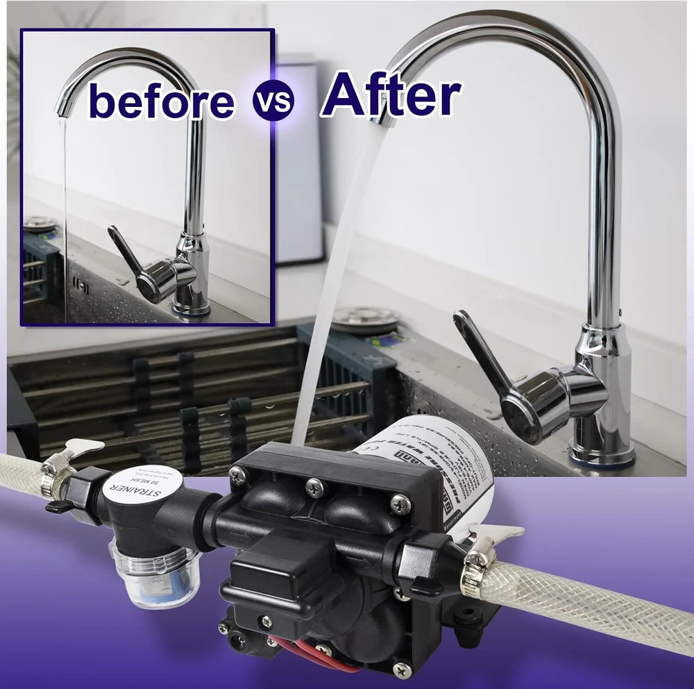 RV Water Pump 12 Volt DC 3.0GPM 55PSI for Shurflo 4008-101-A65 RV Water Pump 12 Volt DC 3.0GPM 55PSI,Replacement For Shurflo 4008-101-A65,Water Pump Self Priming Diaphragm Pump with Pressure Switch for RV Kitchen Bathroom Marine Yacht Garden About this item 【RV Pump Performance】12V DC RV Water pump,3.0GPM water flow.Pressure switch is set to 55PSI.The Electric Water Pump is Designed with a 12V DC Motor,Can be Powered By Any 12 Volt Battery or Mount to Any Cigarette Lighter Socket in the RV and Camper. 【Safety Protection】12V DC RV Water pump has a built-in thermal protector and provides automatic pressure protection.When the motor generates too much heat, the circuit can be automatically disconnected to protect the motor. 【Automatic Pressure Switch】 Electric RV water booster pump equip with an on demand pressure switch which turns it on immediately when the faucet on. 【Wide Application】 Great for use in kitchens, bathrooms, RVs, campers, caravans, boats, car washing, garden watering, showers, yacht house cleaning, and more. 【Additional Accessories】Includes 1x water pressure booster pump, 1x product manual, 1x strainer, 2x 1/2" barbed hose adaptors,1x1/2" male thread hose adaptor,and 2x Stainless steel clamp. Shipping Return Customer Service Feedback Shipping Shipping Cost : Free to USA,and more We ship to eBay address Return Refund is valid within 30 days after the date delivered Refund will be given as money back or replacement The money less the freight cost will be refunded due to their own fault Item must be returned in original packing same as reached Buyers are responsible for the return shipping cost Customer Service Business Hours: Monday thru Saturday 8:30am to 5:30pm EST. Compatibility tables are for reference only and should only be used as guidance so OT Auto Parts recommend checking the part number(OEM number) of your existing unit before purchasing as we cannot take responsibility for incorrect orders placed. Feedback Please leave us with positive feedback if you are satisfied with our products and services,if not, please contact us before leave any neutral or negative feedback,we'll try our best to satisfy with you. Thanks. On Nov 30, 2024 at 01:10:47 PST, seller added the following information: