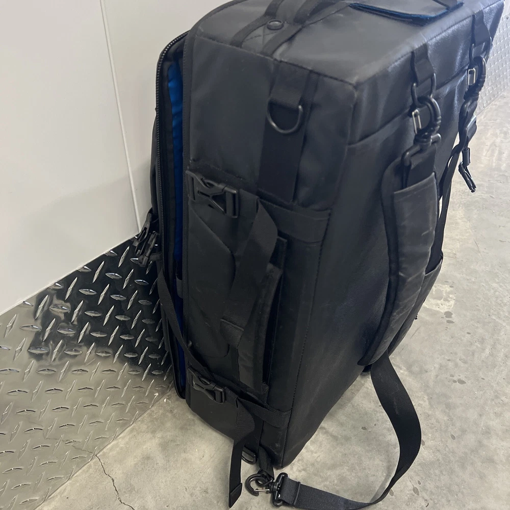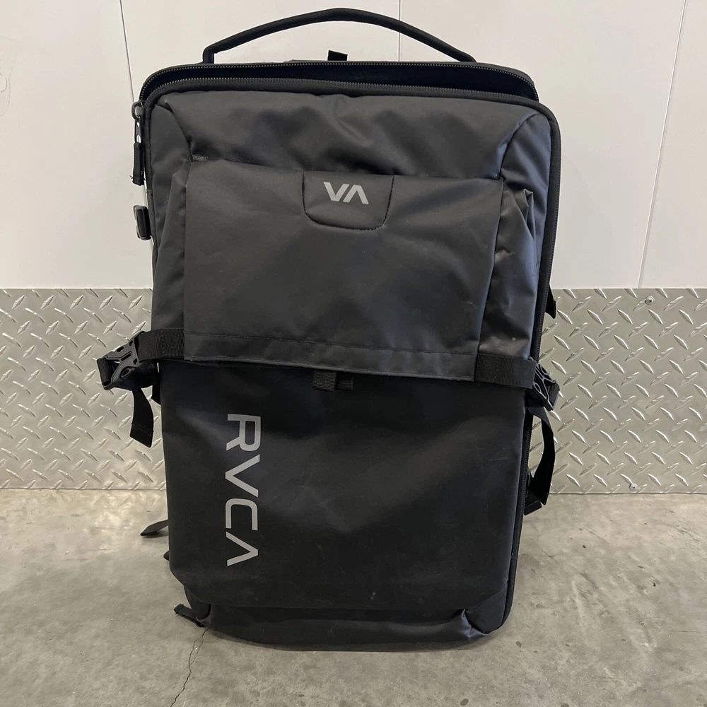 gtin13: Does not apply Closure: Zip, Velcro Department: Men Model: Style# MHABKZNB Features: Adjustable Strap, Laptop Sleeve/Protection, Outer Pockets, Waterproof, Water Resistant, Multiple Zip Compartments Vintage: No Size: Large Occasion: Travel Bag Height: 23 in Brand: RVCA MPN: Unknown Color: Black, Blue Pattern: Solid Bag Depth: 9 in Bag Width: 14 in Style: Backpack UPC: Does not apply Material: Polyester Product Line: Zak Noyle + RCVA Country/Region of Manufacture: China
