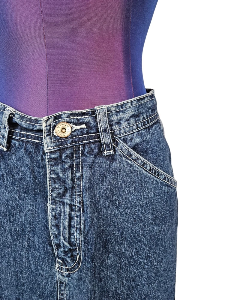 Theme: 90s, American, Bohemian, Cowboy, Grunge, y2k, baggy, slouchy, indie Country/Region of Manufacture: Unknown Vintage: No Season: Fall, Spring, Summer, Winter Department: Women Size Type: Juniors Closure: Zip Fabric Type: Denim Brand: R.V.T Color: Blue Pattern: Solid Accents: Logo, Zipper Style: Maxi Handmade: No Character: na Size: 5 Seller Notes: “Excellent - no flaws” Personalize: No Material: Cotton Features: All Seasons, Pockets, Slit Skirt Length: Long Occasion: Casual, Travel Garment Care: Machine Washable Type: Skirt Rise: High