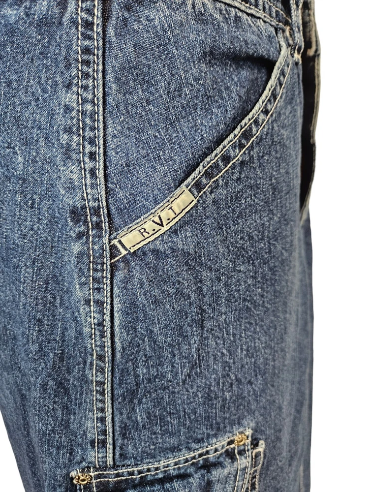 R.V.T Dark Wash Cargo Denim Maxi Jean Skirt Y2K Baggy Style Size 5/6 Juniors C58