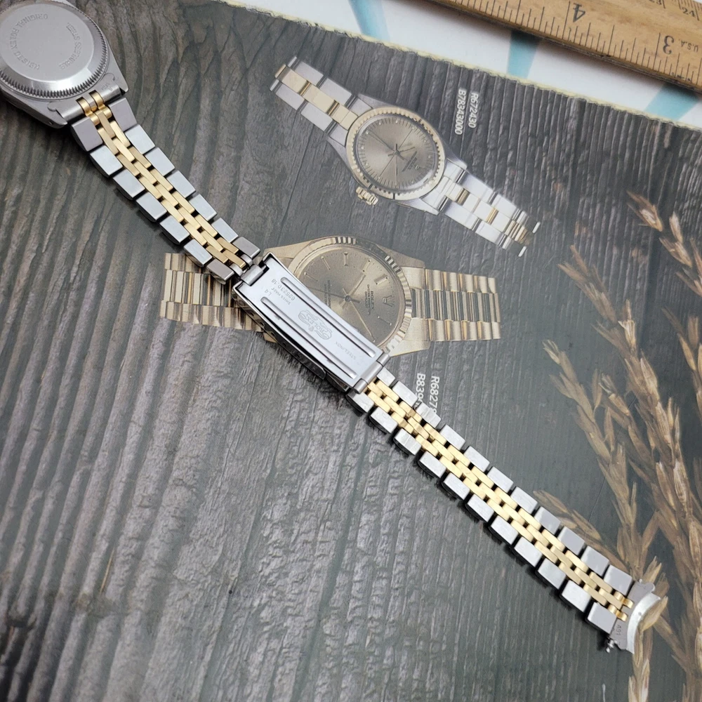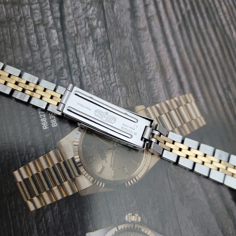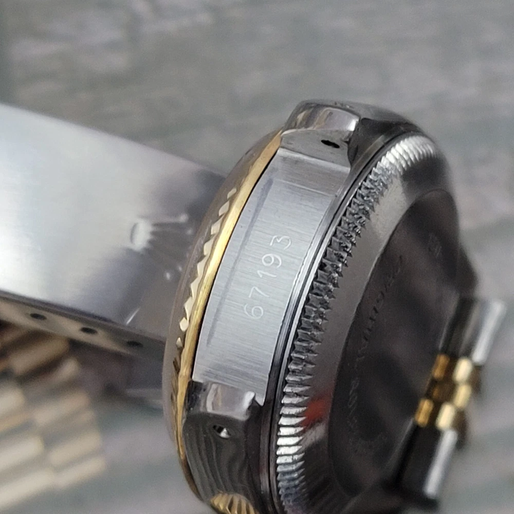 Presented here in true auction format starting at only one penny is this magnificent ladies automatic 18 karat gold and stainless steel 100% original Rolex oyster perpetual. This beauty has just been fully serviced and comes with a 3-month service warranty for your added satisfaction and convenience! This Rolex Oyster Perpetual model 67193, a timeless Swiss masterpiece that seamlessly blends luxury and functionality. Her quality is unsurpassed, crafted with a harmonious combination of18k yellow gold and stainless steel, embodying both elegance and durability. You're going to love the 100% original brilliant white dial set with the midnight black Roman numerals that accurately indicate the passing time, beneath the sapphire crystal, to the gorgeous solid 18k gold hands. Each of the hour markers are raised above the dialed surface and solid 18 karat gold. Key Features: Case and Bracelet: The 24mm stainless steel oyster case is complemented by an 18k yellow gold fluted bezel and a matching two-tone solid 18k & steel bracelet. The original Rolex logo 18 karat gold screw down crown completes the instantly recognizable Rolex two-tone look ensuring a sophistication and style that stands out in any setting. Movement: Swiss quality reliability is the key feature of the fully automatic Rolexs renowned automatic self-winding oyster perpetual movement. This watch guarantees precision and reliability, certified as a chronometer and has just been fully serviced by a master watchmaker, coming with a 3-month service warranty. Dial: The white dial, adorned with elegant Roman numeral hour markers and gold hands, offers a classic yet striking appearance suitable for every event in your life from a day in the office, a night on the town or a weekend at the beach.The scratch-resistant sapphire crystal ensures the dial remains pristine over time. Crown: The 18k yellow gold crown, featuring the iconic Rolex logo, adds a touch of luxury and ensures easy time-setting. To set the time, rotate the crown counterclockwise unscrewing it from the body of the watch. This will put you in the winding position should you need to wind her. To set the time, pull the crown outwards to the time setting position. This Rolex Oyster Perpetual is not just a watch; its a statement of elegance and sophistication. Whether youre attending a formal event or enjoying a casual day out, this timepiece will elevate your style and leave a lasting impression. Indulge in the luxury of Rolex and experience the perfect blend of tradition and innovation with the Oyster Perpetual. Somebody is going to be very pleased when they place the winning bid. Check out all the pictures of this watch that truly do not do her Justice! Good luck to you all! ___________________________________ Take a few minutes and read some of the tens of thousands of positive feedback that we have received from our users here at Decowatches and our sister site Decowatchesparts and you will understand why buying a watch from us is an enjoyable and safe experience! Our shipping fee ensures that this watch is carefully packaged, fully insured, has door to door tracking and comes with a three-month service warranty for your added piece of mind satisfaction and convenience! We are pleased to say that we are now shipping twice a week, either Wednesday or Thursday and Saturdays. Thank you for viewing this gorgeous ladies Rolex and good luck to you all! Emerson