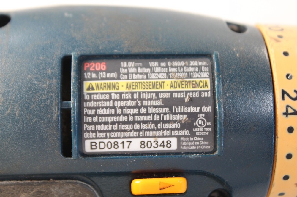 RYOBI Drill P206 18v Cordless 1/2" Driver 2 Speed Tool Only - No Battery