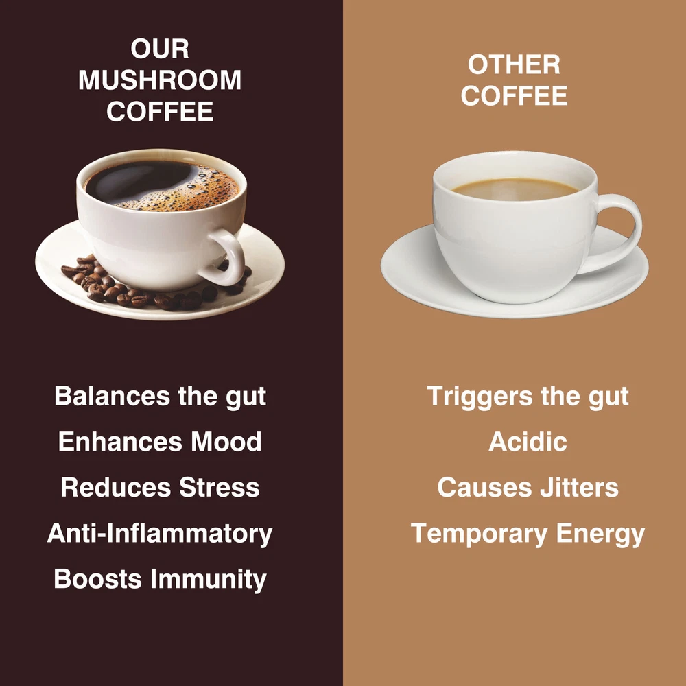 Effects: Digestive Health, Stress Relief,Focus&Immune Support Ingredients: Chaga, Cordyceps, Hericium erinaceus, Ganoderma lucidum, MCT Oil Directions: Brew with hot water and take 2 servings daily. Shipping: Ships within 48 hours on working days. Description: NATURAL ENERGY BOOST: Made from organic chaga and lion's mane mushrooms, this coffee provides a smooth energy lift without the crash or jitters of traditional coffee. DELICIOUS FLAVORS: Notes of cocoa and caramel complement the earthy mushroom flavor in each cup for a truly unique taste experience. INGREDIENTS: RYZE Organic Mushroom Blend (Cordyceps, Lion's Mane, Reishi, Shiitake), Organic Arabica Coffee, Organic MCT Oil, Organic Coconut Milk. Adaptogens in the mushrooms help support immunity, focus, and stress response for an all-day wellness boost. SIMPLE BREWING: Just add a tablespoon of powder to hot water and enjoy! No fuss required for this healthy coffee alternative. ENHANCED MENTAL CLARITY & FOCUS: Infused with Lion’s Mane and Chaga mushrooms, known for their cognitive-enhancing properties, to help sharpen your mind and increase focus without the crash associated with regular coffee. Document On Nov 7, 2024 at 09:01:43 PST, seller added the following information: