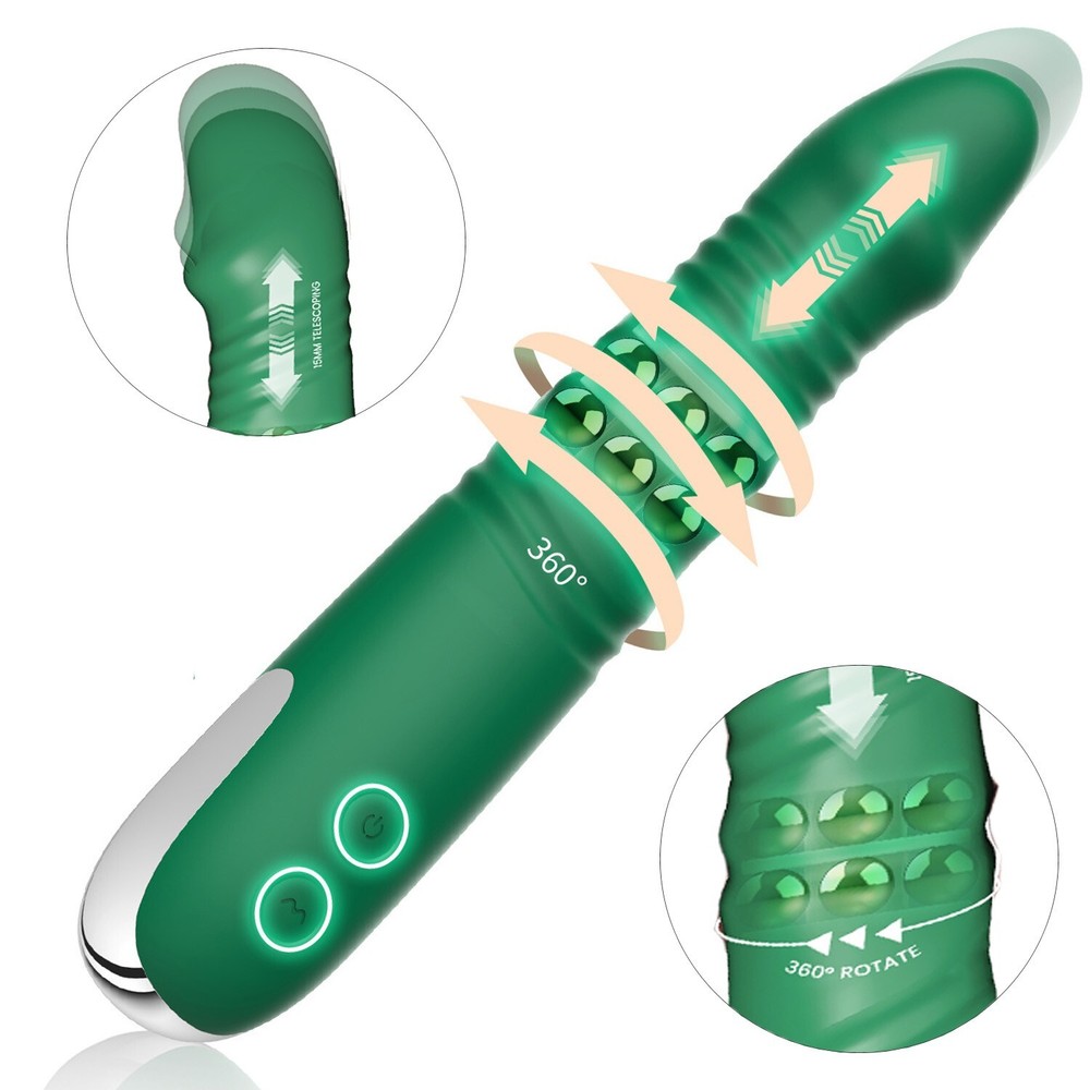 100% new and high quality Life waterproof ,easy to clean, Unique dildo design with 360° rotating beads Pattern: 10 thrusting &vibration &360° rotating modes (3 functions can work alone or together ) Material: Silicone,ABS Size: 8.78in *1.57in Power Supply: USB magnetic charging Charging Time: ≤2h Working Time: ≤ 1h Max Noise: ≤55 db Color: Green Package List: 1 x Vibrator without box 1 x Charger cable 1 x User manual How to Use: ---long press the power button for 3-5 s to turn on/off ---then click to change frequencies Privacy Guaranteed: We will discreet package, unmarked packaging, confidential delivery