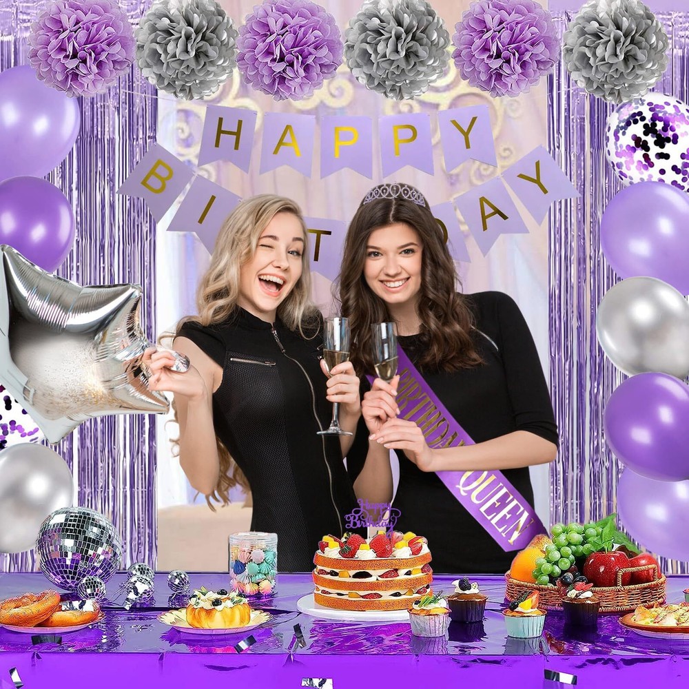 Rabbmall Purple and Silver Birthday Decorations for Women Girls Lavender Party Decor Set with Happy Birthday Banner and Balloons, Sash and Crown, Curtains, Cake Topper Table Cloth All-in-one lavender theme purple birthday party decoration saves a lot of your time and energy in hunting around various online shop. Add the beautiful purple and silver color will add more romantic and festive atmosphere for your birthday party. What in your party balloon packs: 1) HAPPY BIRTHDAY paper banner (1set) 2) light purple pompom flower – 3 pcs, 10 inch 3) silver pompom flower – 3 pcs, 10 inch 4) purple latex balloons – 10 pcs, 12 inch 5) light purple latex balloons – 10 pcs, 12 inch 6) purple cofetti latex balloons – 5 pcs, 12 inch 7) silver latex balloons – 10 pcs, 12 inch 8) star- shaped foil balloons – 2 pcs , 18 inch 8) heart- shaped foil balloons – 2 pcs , 18 inch 9) foil fringe curtains – 2 pcs 10) princess crown and birthday queen sash 11) cake topper – 1 pcs 12) plastic tablecloth – 1pcs, 4.5X 9ft 13) Accessories: 1 x straw, 1 x ribbon, 1 x glue dot Purple Birthday Decorations for Her : Lavender purple decor is suitable for women and girls of most ages: 21st, 30th, 40th, 50th, etc. It look romantic and mysterious after assemble, your families, friends will have a unforgettable memories! Great Value Box: 1 set purple HBD banner, 2pcs tinsel foil fringe curtains, 40pcs latex balloons in purple and silver, 4pcs foil balloons, 6pcs pom poms, 1 princess crown and birthday queen sash, 1pcs cake topper, 1pcs plastic tablecloth. Premium Quality Balloons: These birthday balloons are made of ECO-friendly Foil and rubbery, safe and non-toxic, strong and long lasting, support helium and air. Note: Please DO NOT overfill the balloons,suggest inflate to 85%-90%. Characteristic Birthday Party: The crown and sash specifically designed for the birthday queen, she will get a big hit! A lot of details like tablecloth, cake topper, Curtains and balloons will fill the room with luxurious-look purple. Customer Service: We support refund or resend for any missing or damaged parts in your package and offer LIFETIME WARRANTY! If you have any problem or you need help, please feel free contact us via order page, we will solve it for you. Shipping from the USA All of our products are shipped from the USA, ensuring quick delivery to your destination. Payment We offer the following payment methods: PayPal, credit card, bank transfer, and eBay's secure payment system. Free Shipping & Free Returns Shipping within the USA is FREE. Additionally, any return is absolutely free for you. Risk-Free Purchase You have the option to return an item within 30 days without any justification. We cover the return shipping costs! Fast Shipping We ship immediately upon receipt of payment. Generally, the package is delivered within 2-3 days in the USA. If it takes longer, we will contact you. Quality and Costs Made in Europe, USA, China No customs fees or additional charges Total satisfaction guarantee Invoice with declared VAT available upon request in .pdf format Feedback Your feedback is very important to us. After you pay for your purchase, you will automatically receive positive feedback from us.