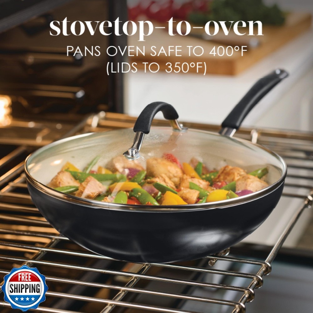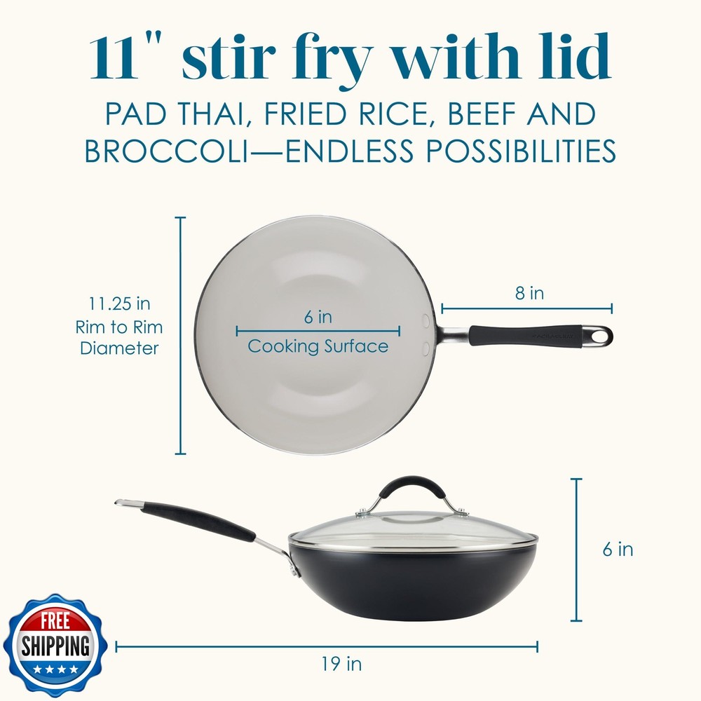Rachael Ray Cucina Ceramic Nonstick Stir Fry Pan and Lid, 11 Inch Non Stick Wok Pan, Dishwasher Safe - Peppercorn Features HEALTHY CERAMIC NONSTICK: High-quality nonstick ceramic on cooking surface and coated rivets for easy-peasy food release and cleanup. Plus, you don’t need as much butter or oil when cooking on ceramic, making dishes that much healthier MADE WITHOUT PFAS: Rachael Ray’s Cucina Ceramic Nonstick is made without PFAS, PTFE, PFOA, BPA, lead or cadmium (Product design does not involve intentionally adding to the interior nonstick coating any of these substances which may otherwise be present in the environment) NEXT-LEVEL NONSTICK: This is no basic nonstick stir-fry pan. You’ll be amazed how effortlessly the cooking surface releases food - even eggs won’t stick! - and cleaning it is simply a cinch COMFY CONTROL: Silicone-grip handles on the pan and lid stay cooler and make for a comfortable and secure hold on your pan. Handles are attached with double rivets and the glass lid is shatter-resistant, making the pan durable enough for everyday use DISHWASHER & OVEN SAFE: This versatile pan is dishwasher safe, oven safe to 400 degrees F (lids to 350 degrees F), and ready for any stovetop (except induction) Shipping Free & Fast Shipping: We offer free shipping to most of the USA with a normal delivery time of 3-7 days. However, due to the current situation, additional delivery time (up to 3 weeks) may be required for some items. Alternative Carriers: We may use alternative carriers (e.g., USPS, FedEx, UPS) to ensure your package arrives safely and on time. Due to the use of multiple carriers, we are unable to provide a tracking number automatically. Handling Time: Orders are processed and shipped within 1-2 business days of receiving cleared payment. Shipping Restrictions: Shipping to Alaska, Hawaii, Puerto Rico, Guam, and other US territories may incur shipping charges or delivery restrictions. Please contact us before ordering, or your order can be refunded/cancelled. State Restrictions: Certain items may not be shipped to California due to state regulations. Contact for Tracking Updates: If you require tracking updates or have any concerns about the delivery of your order, please feel free to contact us, and we will be happy to assist you. Return Policy 30-Day Hassle-Free Returns: If you are not completely satisfied with your purchase, you can return the item for free within 30 days of receiving it for a full refund or exchange. Easy Return Process: Contact us, and we will provide you with a prepaid return shipping label and detailed instructions. No Restocking Fee: There are no restocking fees for returns. However, the buyer is responsible for return shipping costs if the return is not due to a seller"s error. Refund Processing: Refunds will be processed within 1 business day of receiving the returned item in its original condition. Feedback Your feedback is extremely important to us. We strive to provide the best products and customer service possible. If you are satisfied with your purchase, please take a moment to leave us a positive review. If you have any concerns or issues with your order, please contact us before leaving negative feedback. We are committed to resolving any problems and ensuring your satisfaction. Contact Us If you have any questions or concerns, please feel free to reach out to our customer support team. You can contact us through the eBay messaging system. We are available Monday to Friday, 9:00 am to 5:00 pm EST, and we will do our best to respond to your inquiry within 24 hours. Thank you for supporting our small family business!