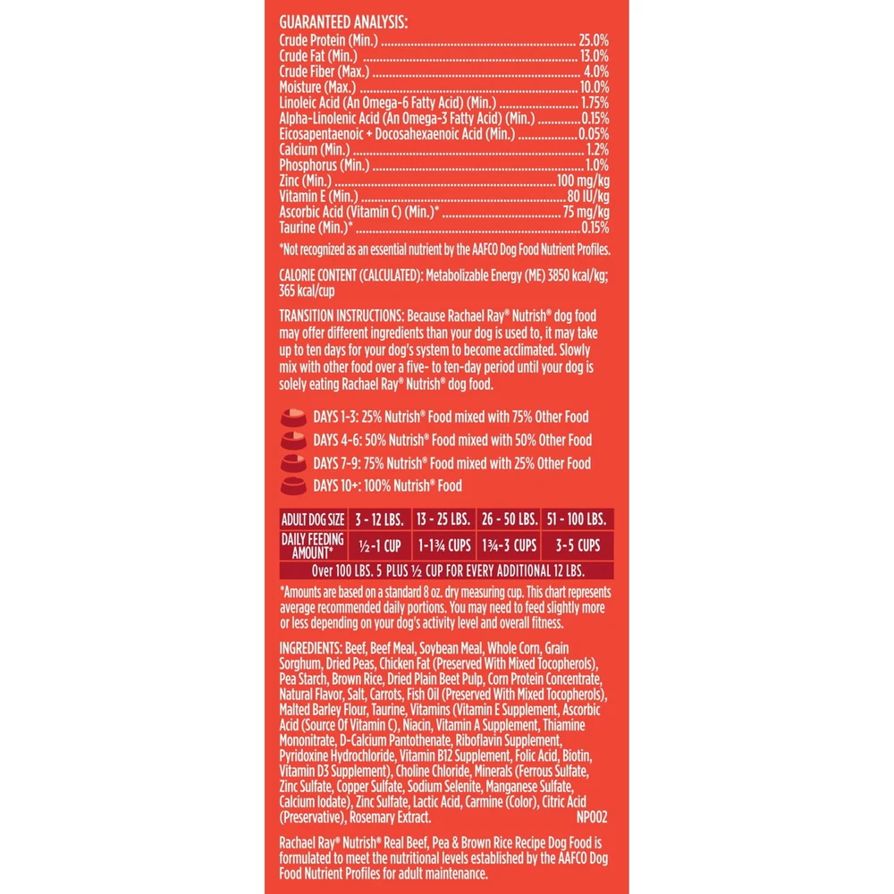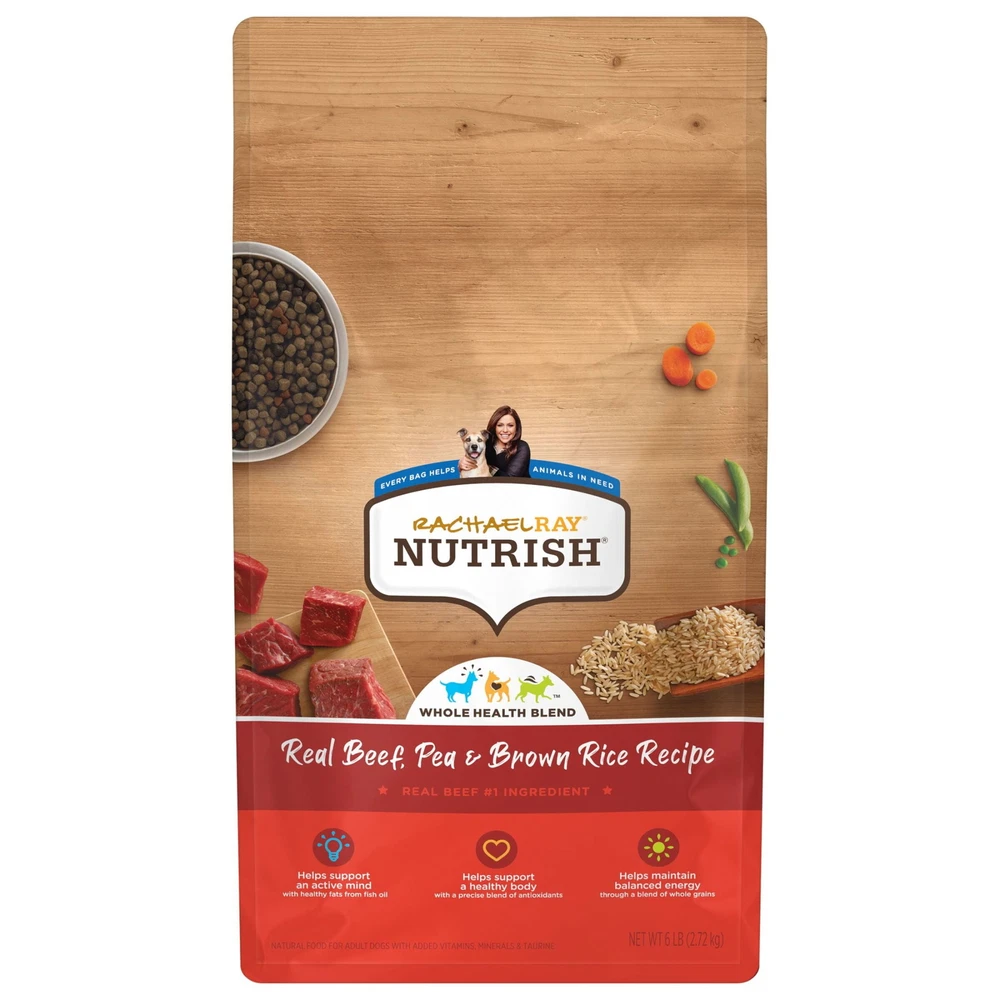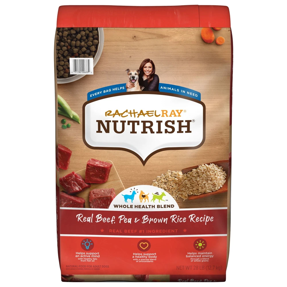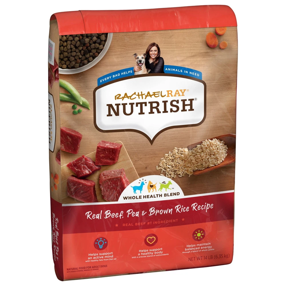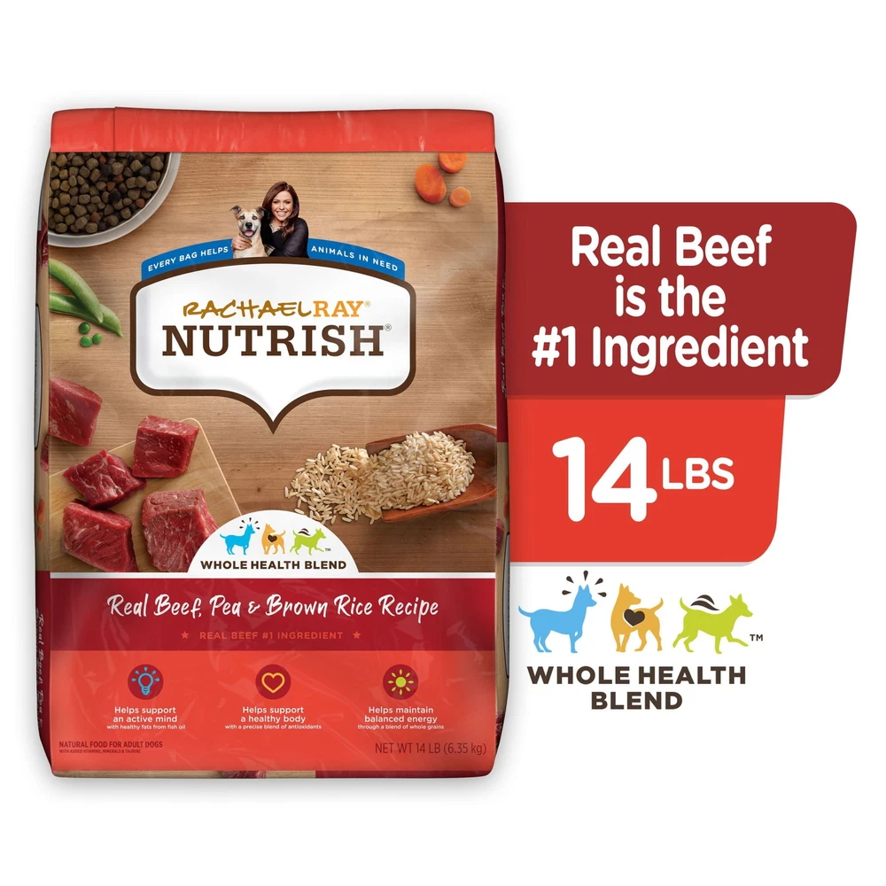 Help your dog keep up with the pack by feeding themNutrish Real Beef, Pea & Brown Rice Recipe. The number one ingredient in this dry dog food is real beef, which helps support healthy organs and maintain lean muscle mass, while fiber sources including peas and brown rice help support healthy digestion. We’ve also added our Whole Health Blend, which includes Omega-3 fatty acids to support an active mind, vitamin C for immune support, and proteins and whole grains to help maintain balanced energy. And it does all that with no artificial flavors and no artificial preservatives. Plus, a portion of the proceeds from the sale of every Nutrish dog food product will be donated to The Foundation, which helps animals in need. So, get a bag and make your dog the happiest one on the block. Contains one (1) 14-pound bag of dry dog food Natural dry dog food for adult dogs with added vitamins, minerals and taurine Includes Nutrish’s Whole Health Blend which helps support a healthy mind, body, and energy level Made with real beef as the number one ingredient A portion of the proceeds from the sale of this product will be donated to The Foundation, which helps animals in need