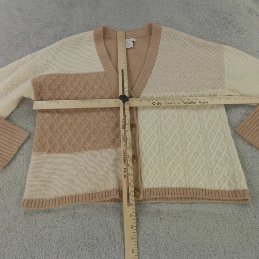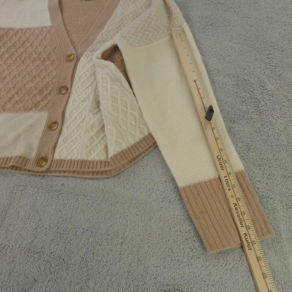 Rachel Zoe Cashmere Sweater Womens XL Beige Tan Patchwork Mixed Knit Cardigan