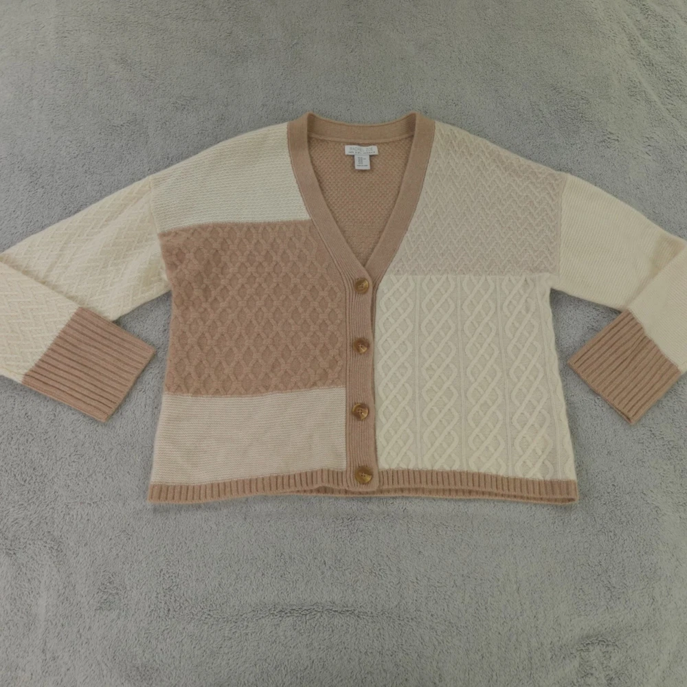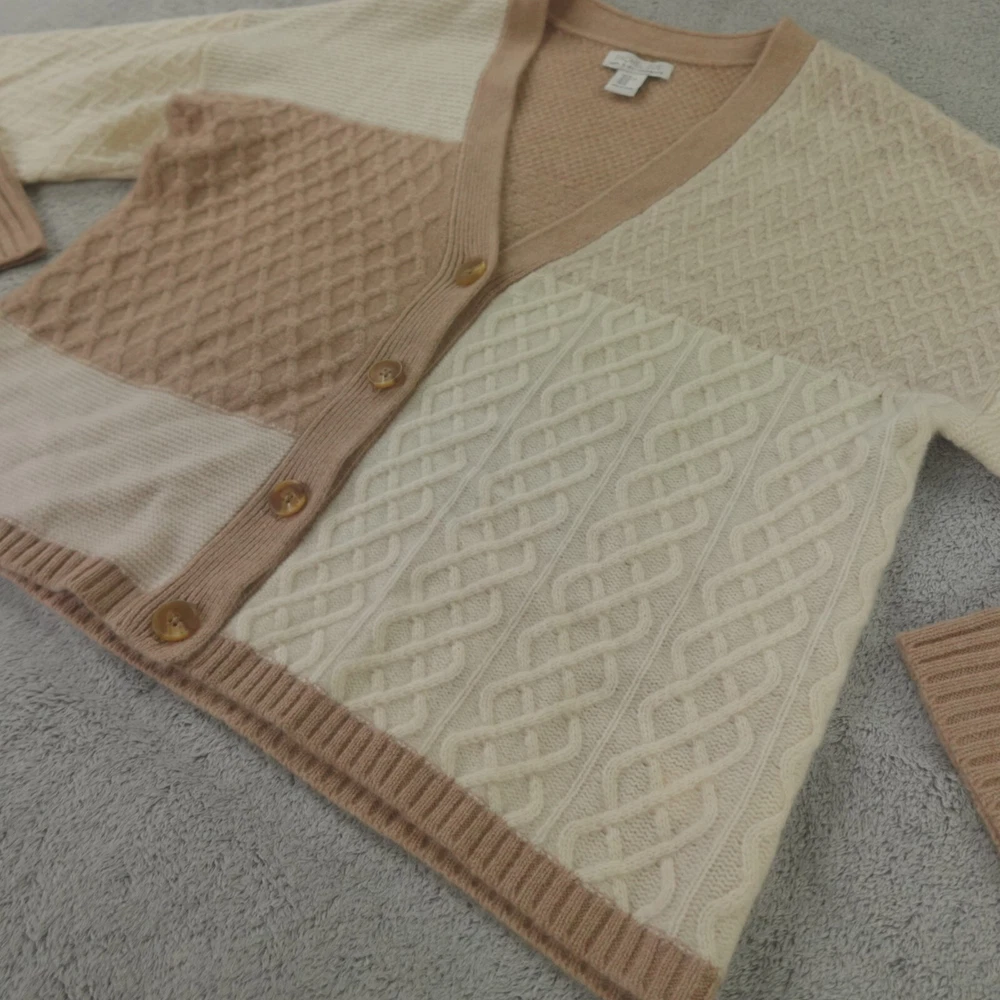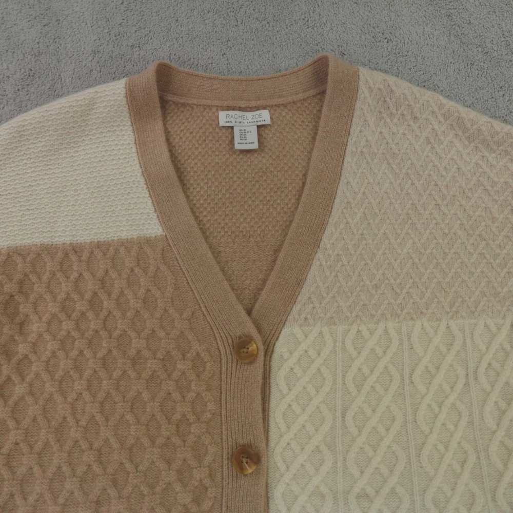 Rachel Zoe Sweater Womens XL Beige Tan Patchwork Mixed Knit Cashmere Cardigan. Sweater is new without tags, no stains, tears or signs of wear noted, no moth holes detected, please review all photos. See photos for measurements. If we missed something, don't worry, we offer free returns. Just indicate, "just didn't like it," for any reason, and we'll pay for the return. Thanks for visiting!