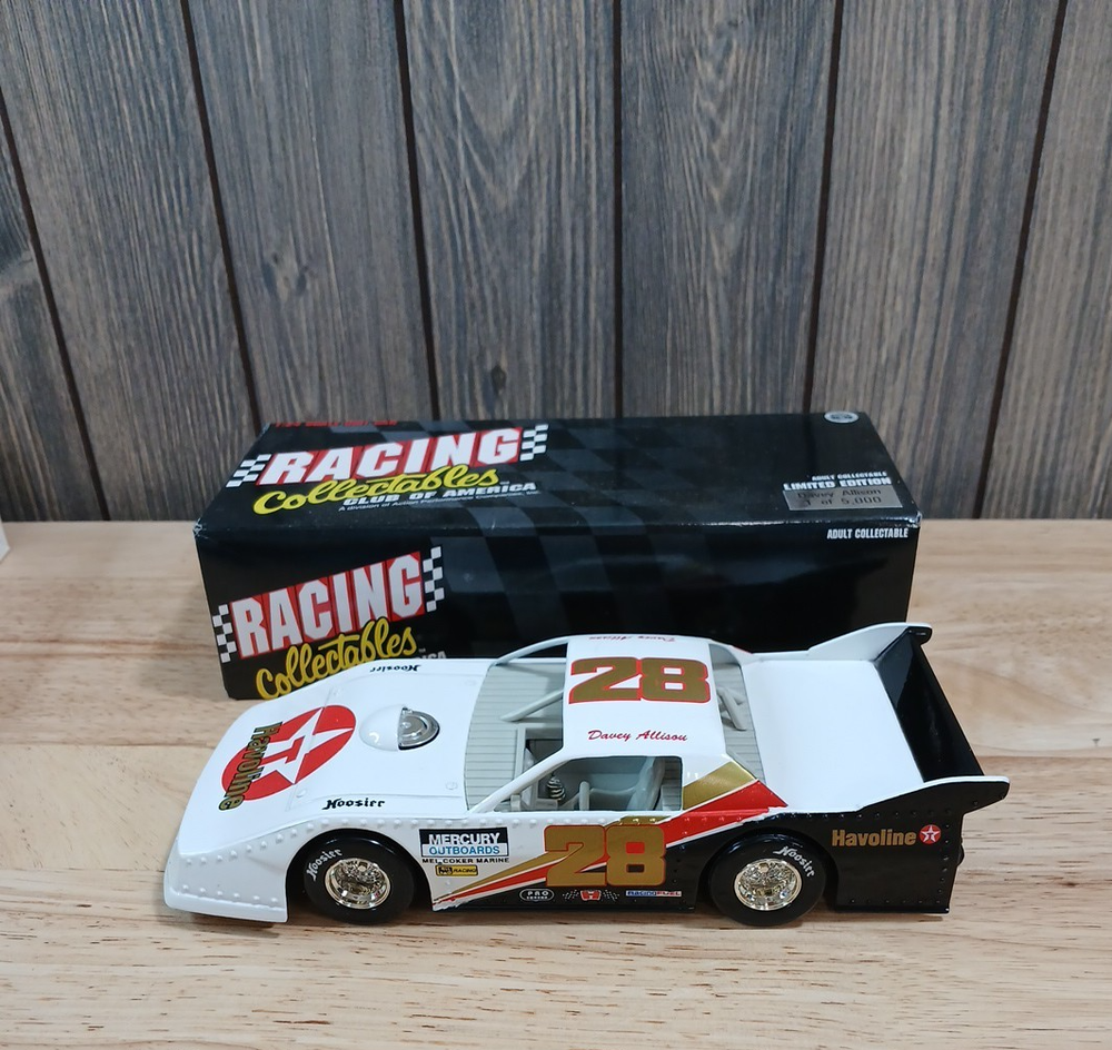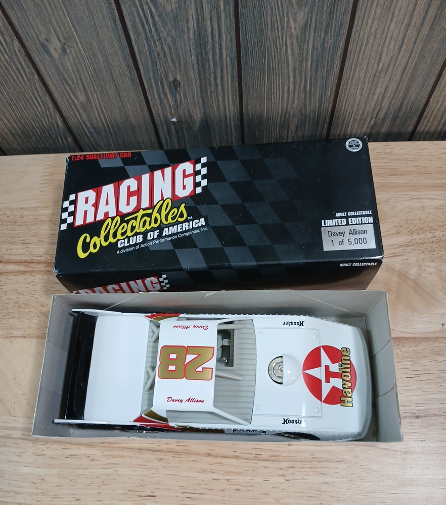 Visit Our Store to Shop for Buy It Now's Item Title: Racing Collectibles Davey Allison 1:24 Scale Dirt Car Condition: May have some wear(see pictures) Shipping Domestic: $12.00 Shipping within the United States International: international shipping through Ebay's Global Shipping Program Return Policy Your satisfaction is important to us. Please contact us with any questions or concerns