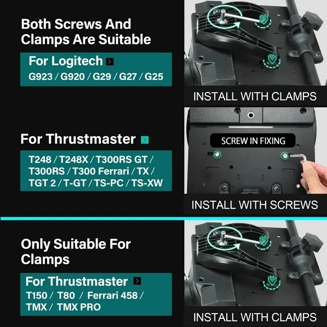 Foldable Steering Wheel Stand W/Racing Seat Logitech G29 G920 Thrustmaster HORI Features 【Racing Wheel Stand Compatible With】 Steering Wheel Stand for -Logitech GT/G923 / G920 / G29 / G27 / G25 -Thrustmaster T248 / T300RS GT / T300RS / T300 Ferrari / TX / T-GT / TS-PC / TS-XW -Thrustmaster T150 / T80 / Ferrari 458 / TMX / TMX PRO -HORI RWA / HORI Racing Wheel Apex -PXN V9 -X Rocker If there are other models, please feel free to contact us, we will quickly answer your questions~ 【Fully Adjustable Height and Angle】 The wheel stand is adjustable in angle and height, and the wheel plate is adjustable in angle, so your pedals are closer or farther away from you.That suit the different different needs of different players. 【Solid Material 】 The wheel stand are made of alloy steel and are durable and resistant to damage.It has a smooth surface,which is not easy to rust and fade,the most important is easy to clean. 【Foldable & Complact Design】 After enjoying your racing game, you can simply fold down the stand, slide it under your sofa or store anywhere in your home to save space. Our handy, collapsible design allows you to transport your stand with ease, so you can race wherever you go! 【Steel Construction】 Stainless steel construction supports the most punishing force-feedback settings and keeps the stand and the wheel stable. 【 Out of the box 】 90% pre-installed, very convenient. Specifications: Color: Black Material : Alloy steel Application: -Logitech GT/G923 / G920 / G29 / G27 / G25 -Thrustmaster T248 / T300RS GT / T300RS / T300 Ferrari / TX / T-GT / TS-PC / TS-XW -Thrustmaster T150 / T80 / Ferrari 458 / TMX / TMX PRO -HORI RWA / HORI Racing Wheel Apex -PXN V9 -X Rocker Weight: 14.35kg Package Included: 1x Racing Wheel Stand(90% assembly-free) 7x Screw (you may only be able to use a few) 2x Hex Wrench 1x Racing Seat Applicable Models: -Logitech GT/G923 / G920 / G29 / G27 / G25 -Thrustmaster T248 / T300RS GT / T300RS / T300 Ferrari / TX / T-GT / TS-PC / TS-XW -Thrustmaster T150 / T80 / Ferrari 458 / TMX / TMX PRO -HORI RWA / HORI Racing Wheel Apex -PXN V9 -X Rocker Installation With Screws ----Install With Screws Install With Fixture ----Install With Fixture Note: Wheel and Pedals NOT included Dress Tops Playsuit Necklace Other Foldable Steering Wheel Stand W/Racing Seat Logitech G29 G920 Thrustmaster HORI DESCRIPTION Features 【Racing Wheel Stand Compatible With】 Steering Wheel Stand for -Logitech GT/G923 / G920 / G29 / G27 / G25 -Thrustmaster T248 / T300RS GT / T300RS / T300 Ferrari / TX / T-GT / TS-PC / TS-XW -Thrustmaster T150 / T80 / Ferrari 458 / TMX / TMX PRO -HORI RWA / HORI Racing Wheel Apex -PXN V9 -X Rocker If there are other models, please feel free to contact us, we will quickly answer your questions~ 【Fully Adjustable Height and Angle】 The wheel stand is adjustable in angle and height, and the wheel plate is adjustable in angle, so your pedals are closer or farther away from you.That suit the different different needs of different players. 【Solid Material 】 The wheel stand are made of alloy steel and are durable and resistant to damage.It has a smooth surface,which is not easy to rust and fade,the most important is easy to clean. 【Foldable & Complact Design】 After enjoying your racing game, you can simply fold down the stand, slide it under your sofa or store anywhere in your home to save space. Our handy, collapsible design allows you to transport your stand with ease, so you can race wherever you go! 【Steel Construction】 Stainless steel construction supports the most punishing force-feedback settings and keeps the stand and the wheel stable. 【 Out of the box 】 90% pre-installed, very convenient. Specifications: Color: Black Material : Alloy steel Application: -Logitech GT/G923 / G920 / G29 / G27 / G25 -Thrustmaster T248 / T300RS GT / T300RS / T300 Ferrari / TX / T-GT / TS-PC / TS-XW -Thrustmaster T150 / T80 / Ferrari 458 / TMX / TMX PRO -HORI RWA / HORI Racing Wheel Apex -PXN V9 -X Rocker Weight: 14.35kg Package Included: 1x Racing Wheel Stand(90% assembly-free) 7x Screw (you may only be able to use a few) 2x Hex Wrench 1x Racing Seat Applicable Models: -Logitech GT/G923 / G920 / G29 / G27 / G25 -Thrustmaster T248 / T300RS GT / T300RS / T300 Ferrari / TX / T-GT / TS-PC / TS-XW -Thrustmaster T150 / T80 / Ferrari 458 / TMX / TMX PRO -HORI RWA / HORI Racing Wheel Apex -PXN V9 -X Rocker Installation With Screws ----Install With Screws Install With Fixture ----Install With Fixture Note: Wheel and Pedals NOT included PAYMENT SHIPPING RETURNS CONTACK PAYMENT - We accept payment via Paypal. - International Orders must be paid via Paypal. - Payments must be made within 4 working days from the date of your order. - All prices stated are in the currency specified. - There are no hidden fees on the advertised price. SHIPPING - All orders placed before 1pm will be dispatched the same day (Monday-Friday Only). - Orders are securely packaged to prevent any damage. - Items are sent from our UK Warehouse. - Delivery times from day of dispatch:- Standard UK 3-5 Working Days, Europe 8-12 Working Days, The Rest Of The World 10-14 Working Days. - Items ordered over the weekend will be sent on the next working day. RETURNS - All items are sold as described above. - If you are not happy with your purchase, please notify us within 60 days of receipt. - All unwanted items must be returned complete and in a re-saleable condition at the buyers expense. - For faulty, defective or not as described items please contact us for a replacement or refund. CONTACK - Please kindly message us if there is any problem before leaving negative feedback, thank you for your kindness in advance! On Dec 31, 2024 at 00:57:05 PST, seller added the following information: