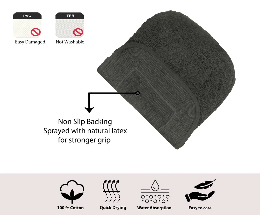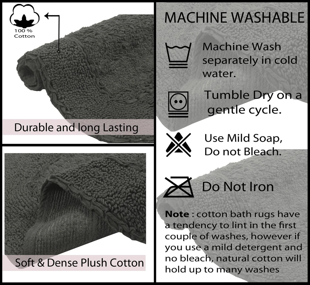 Radiant Collection 100% Cotton Washable Bathroom Rug Set Soft Non-Slip Decor