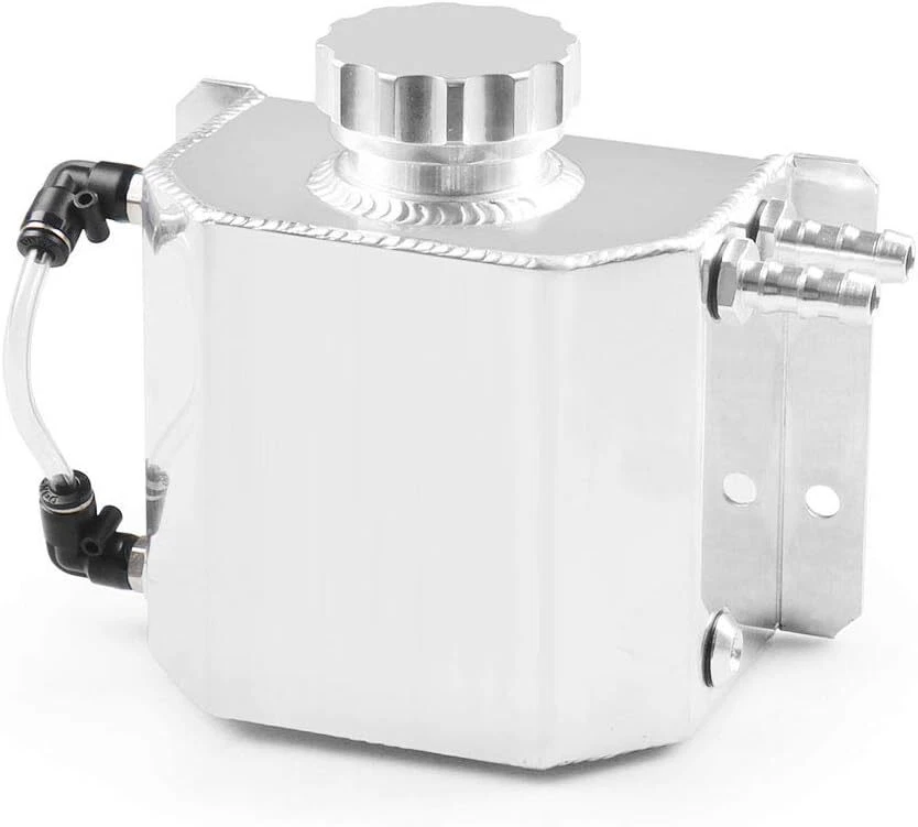 [Size] The Male to barb fitting thread size is M14*1.5.can work with 3/8" ID fuel hose.Overflow tank storage volume1L. [Fitment]Universal coolant reservoir tank, fit for mostly of vehicles.Please measure before purchase to make sure there is enough space for installation. [Note]Tight closed cap, fully TIG welded and thread come with O-ring gasket, let coolant reservoir can keep a good closed environment and prevent coolant leakage.It is high recommended use Tetflon tape when install, it can enhance airtightness prevent interface leakage. [Function]When the coolant pressure in the radiator exceeds the pressure cap setting, the coolant is sealed through the pressure cap and flows through the overflow tube into the radiator coolant overflow tank.Bottom port is radiator overflow Universal coolant reservoir tank, fit for mostly of vehicles.Please measure before purchase to make sure there is enough space for installation. Feature: Capacity:1L Pipe ID :3/8" Thread size:M14*1.5 Size:165mm/6.5inchx80mm/3.15inchx112mm/4.41inch Package: Coolant Overflow Tank * 1 Hollow Nut & Pneumatic Connector *2 Hose Connector *2 Aluminium Cap *1 1L Universal Coolant Overflow Tank,Reservoir Expansion,Aluminum Coolant Radiator Expansion Tank Universal coolant reservoir tank, fit for mostly of vehicles 1L storage capacity It can enhance airtightness and prevent interface leakage Please measure before purchase to make sure there is enough space for installation High Quality & Durable Color: Silver Material: Aluminum alloy Anodized polished and durable,it has the advantages of good corrosion resistance,high hardness,wear resistance and heat resistance Level indicator Level indicator,easy to read level Bottom drain valve with o-ring.Easy to clean,seals well and reusable constantly When the coolant pressure in the radiator exceeds the pressure cap setting, the coolant is sealed through the pressure cap and flows through the overflow tube into the radiator coolant overflow tank