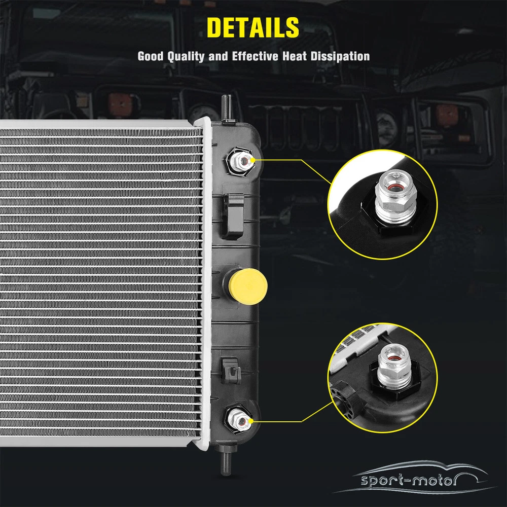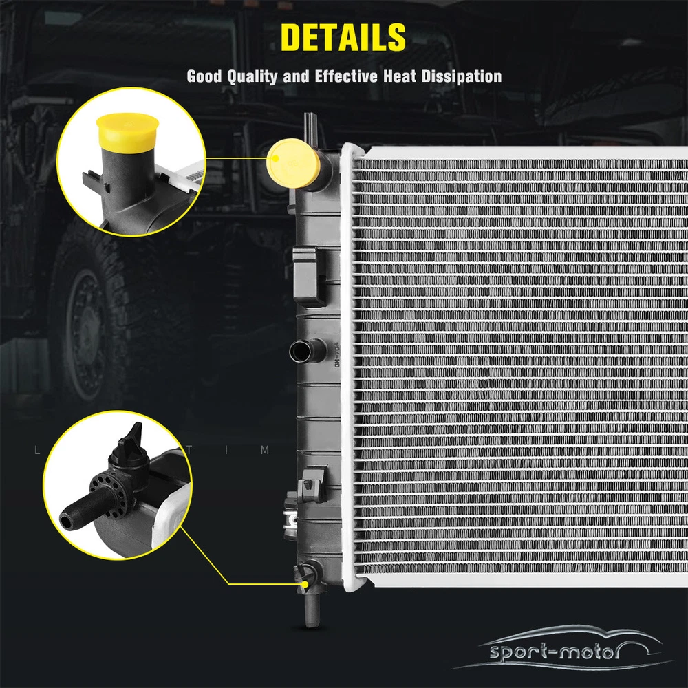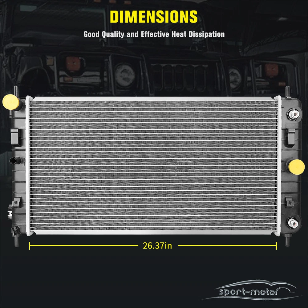 Document 1. The radiator cap that has not passed the test can’t release the pressure when it reaches the pressure value. 2. The damaged thermostat is unable to carry out a large cycle, resulting in a continuous increase in the radiator pressure. 3. The radiator fan does not turn, resulting in high temperature in the water tank. 4. Drain the air from the cooling system. Refer to the user manual or repair manual. 5. Please refer to owner's manual to add coolant. 6. Do not open the hood until the steam has subsided. The engine compartment may be very hot, causing serious injuries such as burns. 7. Please stop the vehicle immediately, when “ENGINE OVERHEAT/High Temperature” shows on the dashboard or steam comes out from under the hood. 8. Keep hands and clothing (especially a tie, a scarf) away from the fans and belts. Failure to do so may cause the hands or clothing to be caught, resulting in serious injuries. 9. Do not loosen the radiator cap while the engine and radiator are hot. Serious injuries, such as burns, may result from hot coolant and steam released under pressure. . Feature: High quality Aluminum Radiator Core with Plastic Tanks. Good sealing and Effective Heat Dissipation, not easy to leak or overheat. All of the new radiators will be inspected before selling (including 100% leaking test). Specification: Core Material: Aluminum Tank Material: Plastic Core Dimension: 26-11/16 * 14-9/16 inches Inlet Diameter: 1-5/16 inches. Outlet Diameter: 1-5/16 inches. Fitment: For 2004 - 2009 Chevrolet Malibu V6 3.5L & 3.9L ONLY For 2005 - 2010 Pontiac G6 V6 3.5L & 3.9L ONLY For 2007 - 2008 Saturn Aura 3.5L V6 Not for 2.2L, 2.4L & 3.6L Models Package: 1x Radiator 1x Using Guide Shipping The shipping rates listed are only for residential or commercial destinations in the continental 48 United States. All international sales will go through eBay Global Shipping Program.Please ask us if there are any questions. We only ship the item to the address that is sent to us at the time of checkout. Please verify the correct shipping address in your PayPal account before making your payment. If we ship your item to an old or invalid address and you are not able to locate the item, we are not responsible for shipping a replacement. Currently, we do not ship to Hawaii, Alaska, Puerto Rico,APO/FPO/PO Boxes. We use USPS, UPS & FedEx as shipping method. Payments cleared before 12 PM PST, will be shipped on the same day. Payment We accept PayPal and all forms of credit card. We will only ship to the confirmed Paypal shipping address given with the payment. We do not offer local pick up service. Return 30 days Money Back Guarantee. If any package that needs to be returned, please contact our customer service first to receive a RMA form. All return items MUST be in brand new condition. About Us Specialized in aftermarket auto parts since 2012, we source and work directly with professional manufacturers to provide the highest quality parts at the most economical prices. We also has over 5 years of shipping experience with FedEx and USPS . Our packing quality is guarantee ,item shipping is timely!