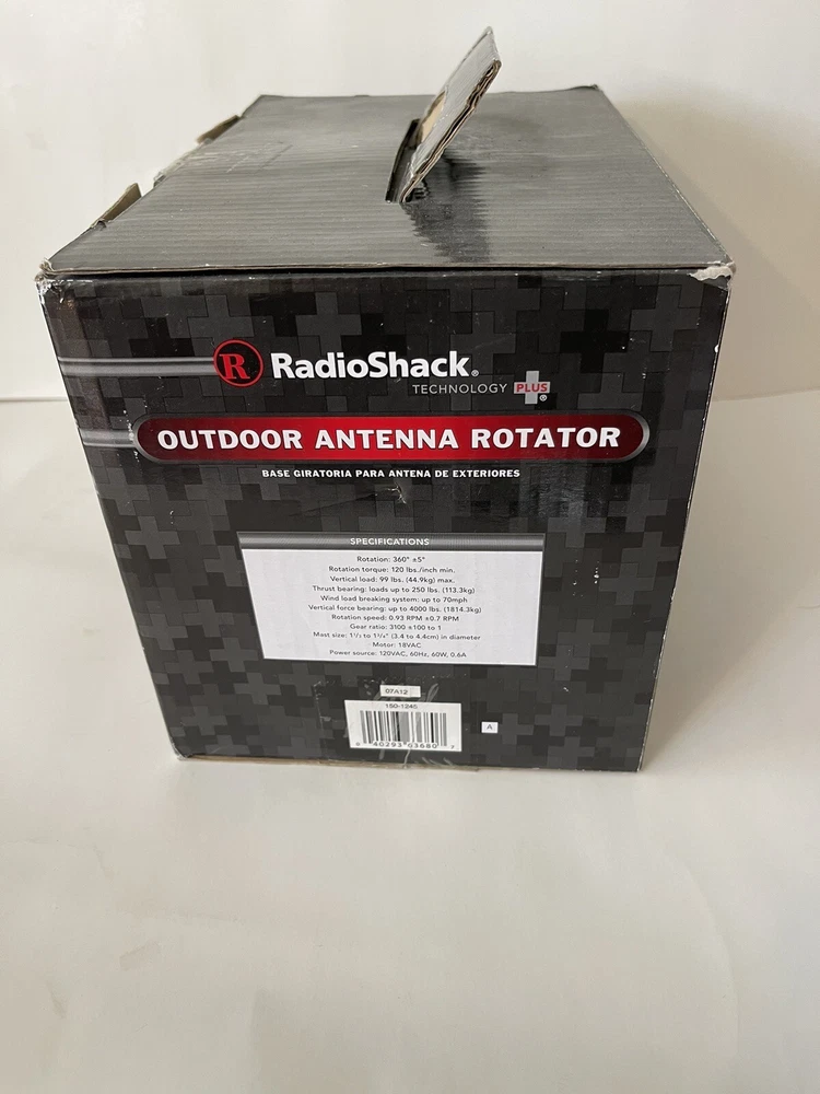 The RadioShack Outdoor Antenna Rotator 150-1245 is the perfect addition to any tv outdoor antenna setup. Designed to work with any tv antenna mast, this antenna rotator is ideal for those looking for a motorized rotation feature. The antenna rotator is made of durable plastic and weighs about 9lbs, making it easy to install and you'll be able to enjoy crystal clear reception of all your favorite local channels. The color of the antenna rotator blends in seamlessly with your home's exterior and the model number 150-1245 ensures compatibility with your RadioShack products. This high-quality antenna rotator is a must-have for anyone looking to enhance and achieve the best possible reception to enjoy each and every tv channel available in your area. It comes with all the hardware needed for the installation except the three wire conductor cable.