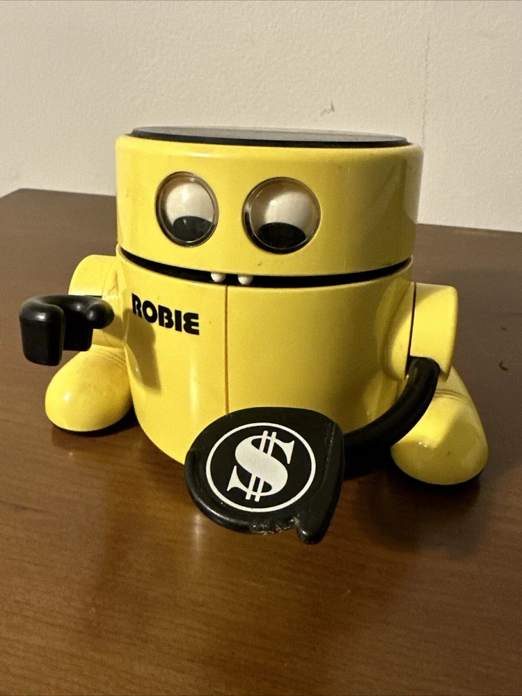 WORKING Radio Shack Robie the Bank. Clean for the age. Some small scuffs but nothing awful. Missing bottom covers but works as it should. Can send videos upon request.