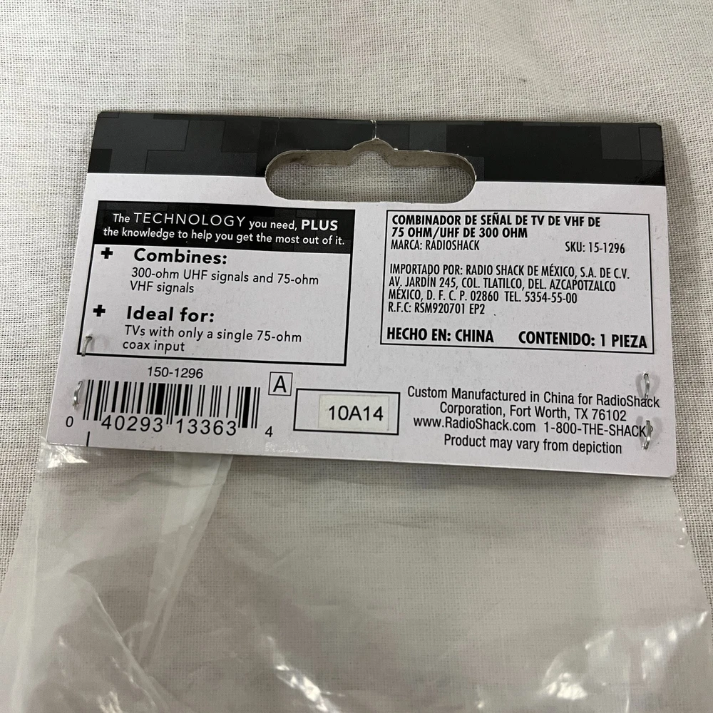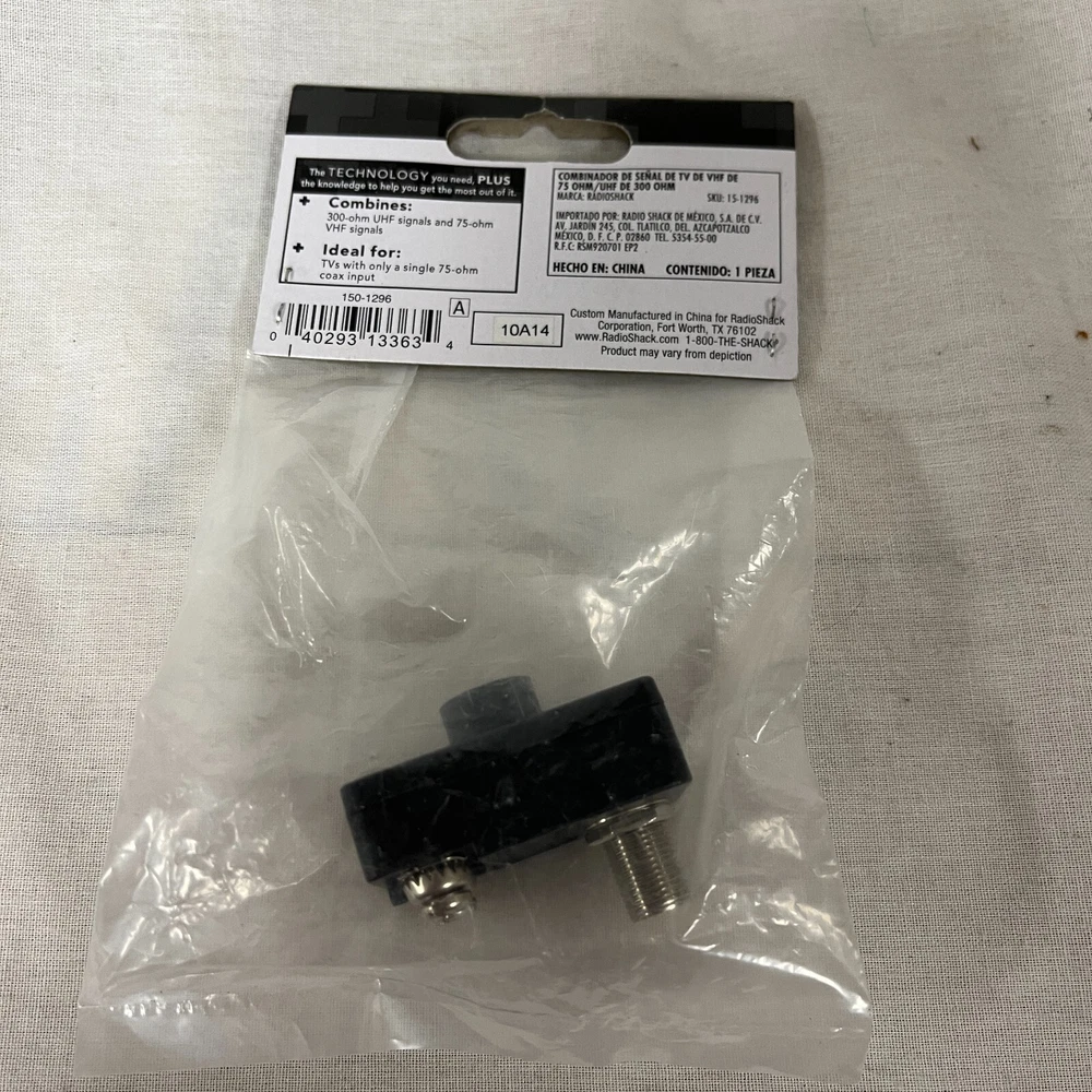 TV Signal Combiner Combines 300-ohm UHF signals and 75-Ohm Vhf Signals Ideal for Tvs with only a single 75 ohm coax input Radio Shack catalog number 15-1296 New Item from a store that closed