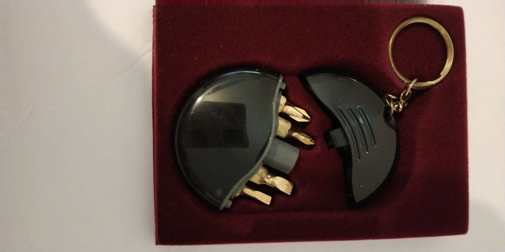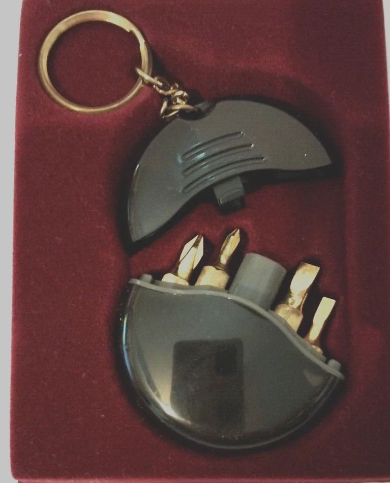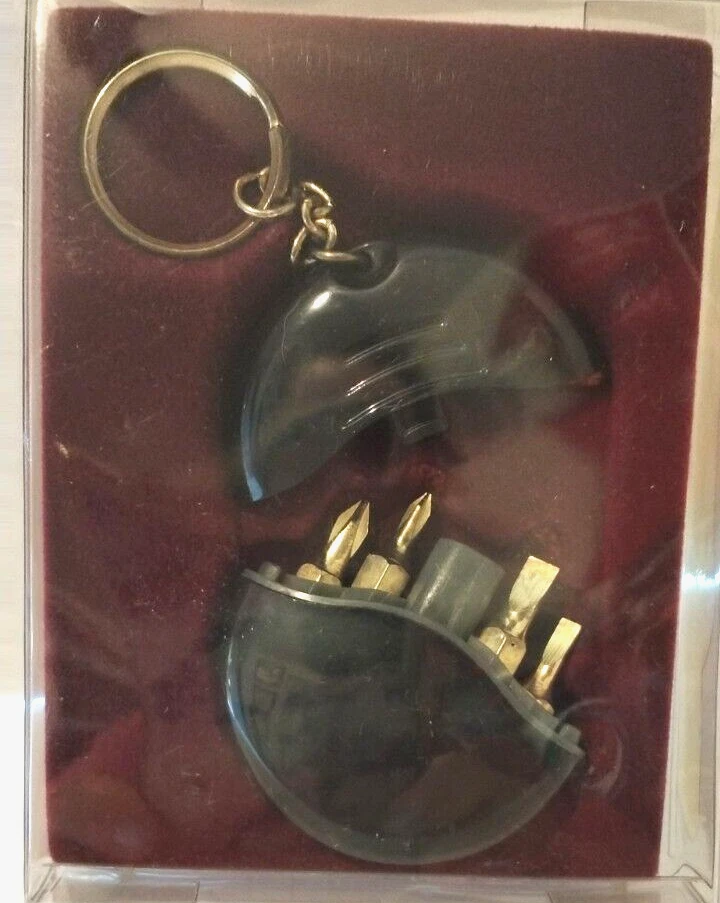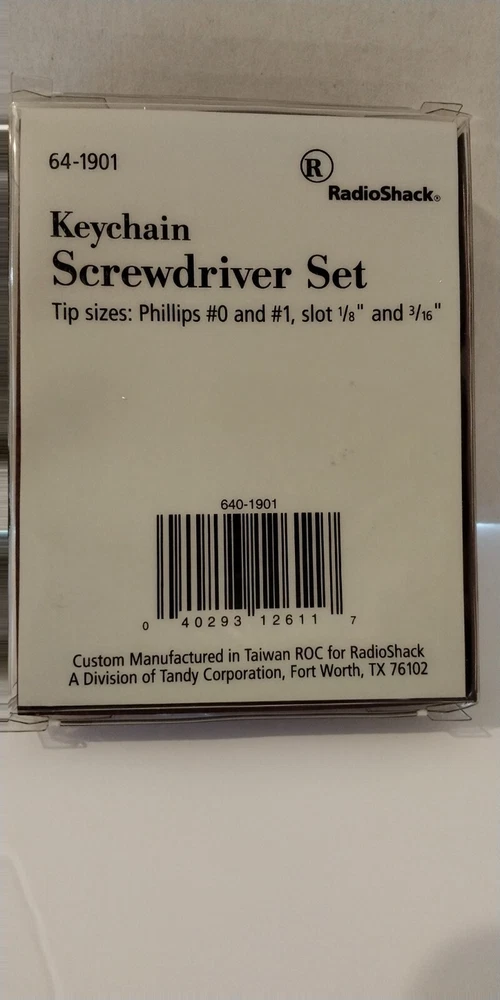 Radio Shack Item# 64-1901 New/Vintage/Collectible Keychain Screwdriver Set Keyring On Chain 4 Tip Sizes: Phillips#0 & #1, Slot 1/8 & 3/16 Color: Black Plastic Case Metal Tips As Seen In Photos From A Smoke Free Home This vintage collectible keyring set from Radio Shack is a must-have for any modern era enthusiast. The black color and plastic & metal material make it a durable accessory to keep your keys organized. The detachable keyring and screwdriver set features make it a versatile tool for everyday use. Perfect for collectors or anyone who appreciates a unique and functional keychain.
