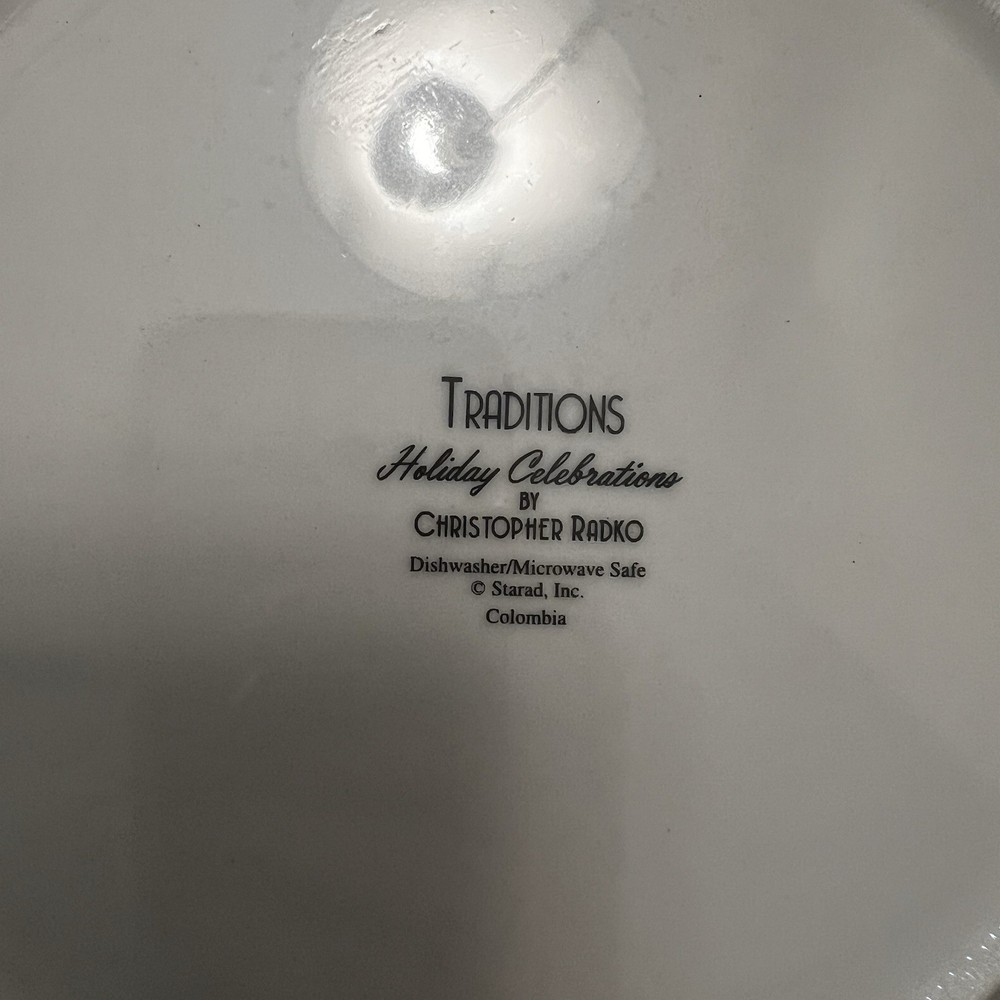 This is a Christopher Radko Traditions Holiday Celebrations 5-piece dinnerware set featuring a ChristmasTree theme. The set includes a saucer, soup bowl, salad plate, dinner plate, and cup, all made of earthenware with a glossy finish. It is from the 2000-2009 time period and is microwave and dishwasher safe. Made in Colombia, this original dinnerware set is designed for holiday celebrations. Contains: Dinner Plate Salad Plate Rimmed Soup Bowl Cup & Saucer Smoke free home Please visit my store at https://www.ebay.com/str/theuniqueredhead. Thank you for your consideration.Please message me if you have any questions. I do combined shipping on my items in the store.