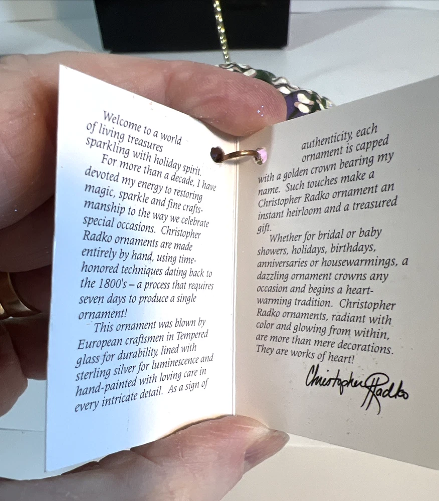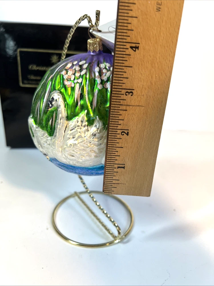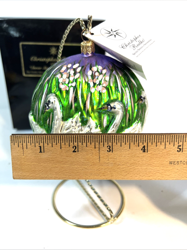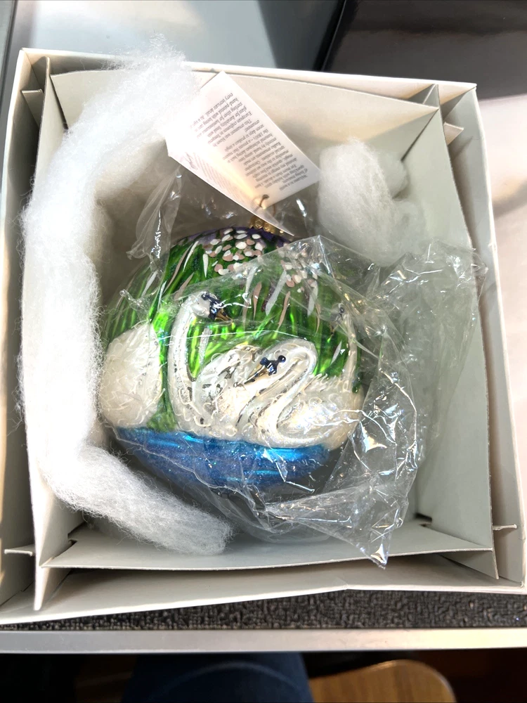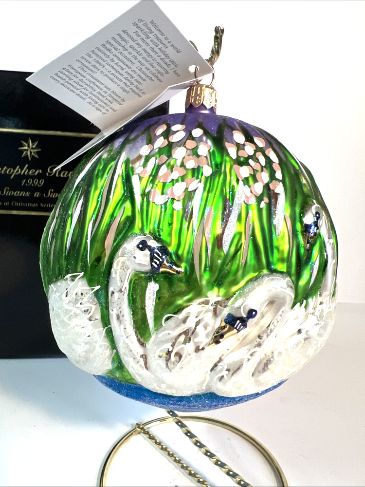 The Radko SEVEN SWANS A SWIMMING Christmas Ornament is a vintage collectible from the 12 Days of Christmas series. Handmade of glass, this multicolor ornament was manufactured in 1999 by the renowned brand Christopher Radko. This limited edition ornament is a unique and festive addition to any holiday decor collection, perfect for adults who appreciate art glass pieces. I will pack with care and get it to you ASAP thanks for looking !