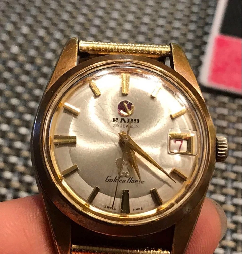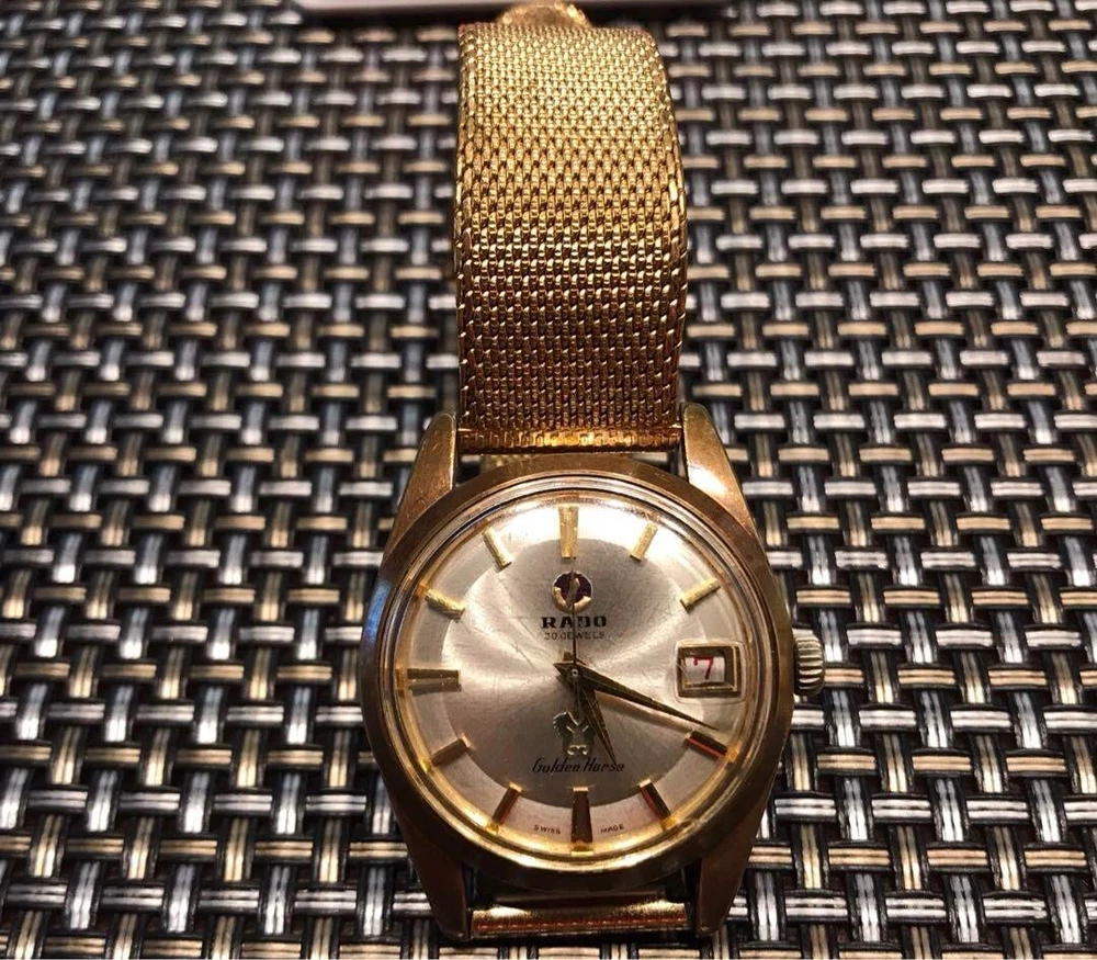 Brand: Rado Band Material: Stainless steel Case Finish: does not apply Model: Rado Golden Horse Bezel Type: does not apply Watch Shape: Round Band Color: Gold Dial Color: Silver gtin13: Does not apply Reference Number: NA Closure: does not apply Seller Notes: “Please check photos for condition.” With Service Records: No Case Size: NA Band Width: does not apply With Manual/Booklet: No Style: Casual, Classic, Dress/Formal Dial Pattern: does not apply Case Material: Stainless Steel Indices: Stick Indexes Bezel Color: Gold Case Color: Silver Max Wrist Size: 16.5CM Movement: Mechanical (Automatic) Caseback: does not apply Case Thickness: does not apply Department: Men Customized: No With Papers: No Number of Jewels: NA Vintage: Yes Country of Origin: Japan Features: Swiss Made, Self-Winding Band/Strap: Bracelet Theme: does not apply Year Manufactured: Unknown With Original Box/Packaging: No Escapement Type: does not apply Water Resistance: Non-Waterproof Lug Width: does not apply UPC: Does not apply Type: Wristwatch Display: Analog
