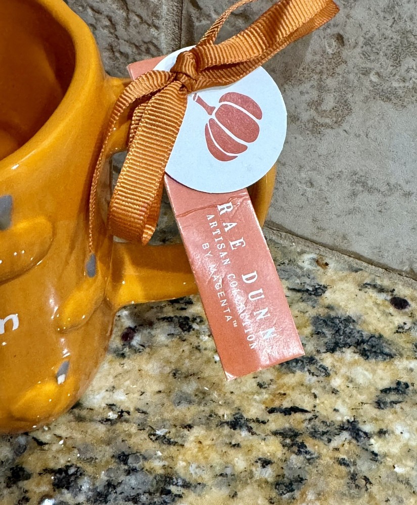 Material: Ceramic Brand: Rae Dunn Occasion: All Occasions, Fall, Halloween, Thanksgiving Color: Orange Pattern: Pumpkin Spice Product Line: Pumpkin Spice Production Style: Farmhouse Type: Mug