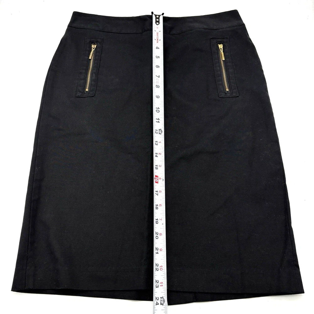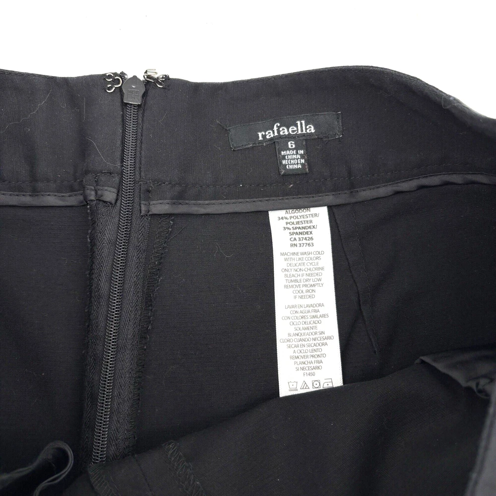 Rafaella Black Pencil Skirt 63% Cotton, 34% Polyester, 3% Spandex Black Knee Length Flat Front 2 Zip Pockets Zip and Hook & Eye Closure on Back Unlined 8" Slit On Back Hem Moderate Stretch! Women's Size 6 Please refer to measurements below to ensure accurate fit before purchase! 15" waist (30" circumference) 19" hips 18.5" hem 23" full length from waist to hem Measurements made with garment laying flat. Excellent pre owned condition. Very gently owned. No rips, tears, stains, holes or other notable flaws. Clean and from a smoke free home.