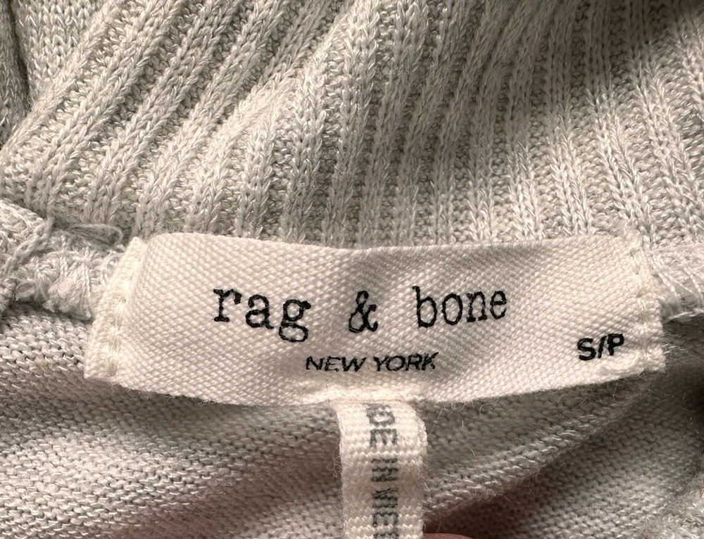 Rag & Bone Bowery Heathered Soft Stretch Turtleneck Size Small Condition: excellent with the exception of a small makeup mark on the back of the collar Brand: Rag & Bone Style: Bowery Heathered Turtleneck with Button up Feature on back Pit to Pit: 23” Length. 21” Soft stretch turtleneck flaunts a timeless heathered finish. • Turtleneck • Long sleeves • Pullover style • Rib-knit trim • Rayon/polyester/spandex • Machine wash • Imported SIZE & FIT • Regular fit • About 23'" from shoulder to hem • Model shown is 5'10" (177cm) wearing a US size Small ABOUT THE BRAND Founded in 2002, Rag & Bone founder Marcus Wainwright combined his British heritage with a downtown New York aesthetic. At the heart of the edgy yet laid-back brand is its focus on quality craftsmanship and attention to detail. The epitome of cool, off-duty style, it's no wonder the signature second-skin denim is favored by many.