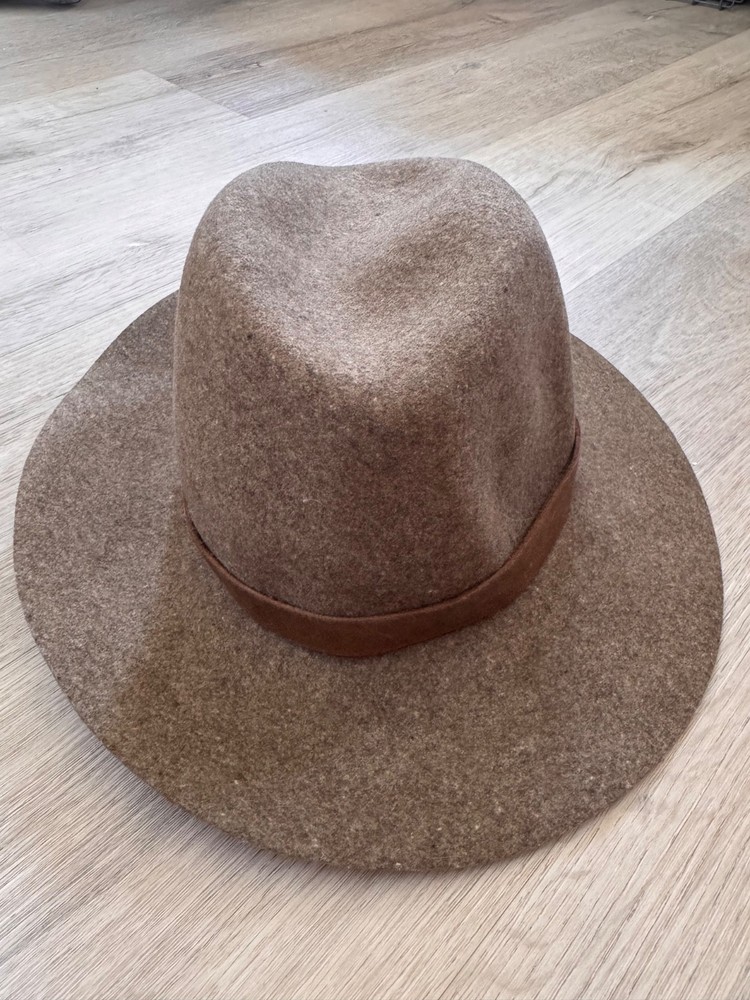 Rag & bone wool felted leather trim fedora hat. Brown and brown leather trim. Size M, measures apx 22”.