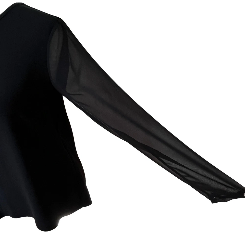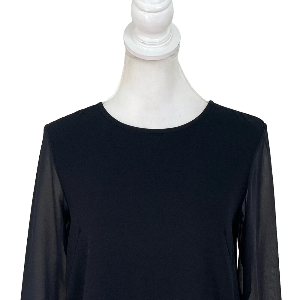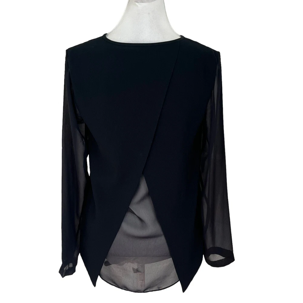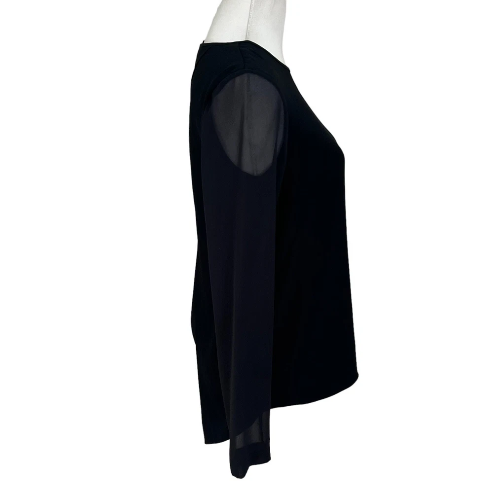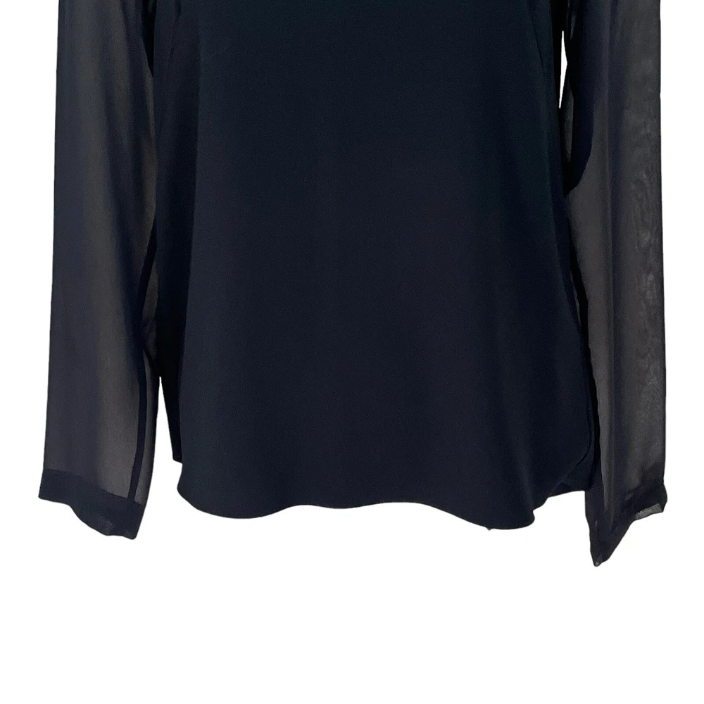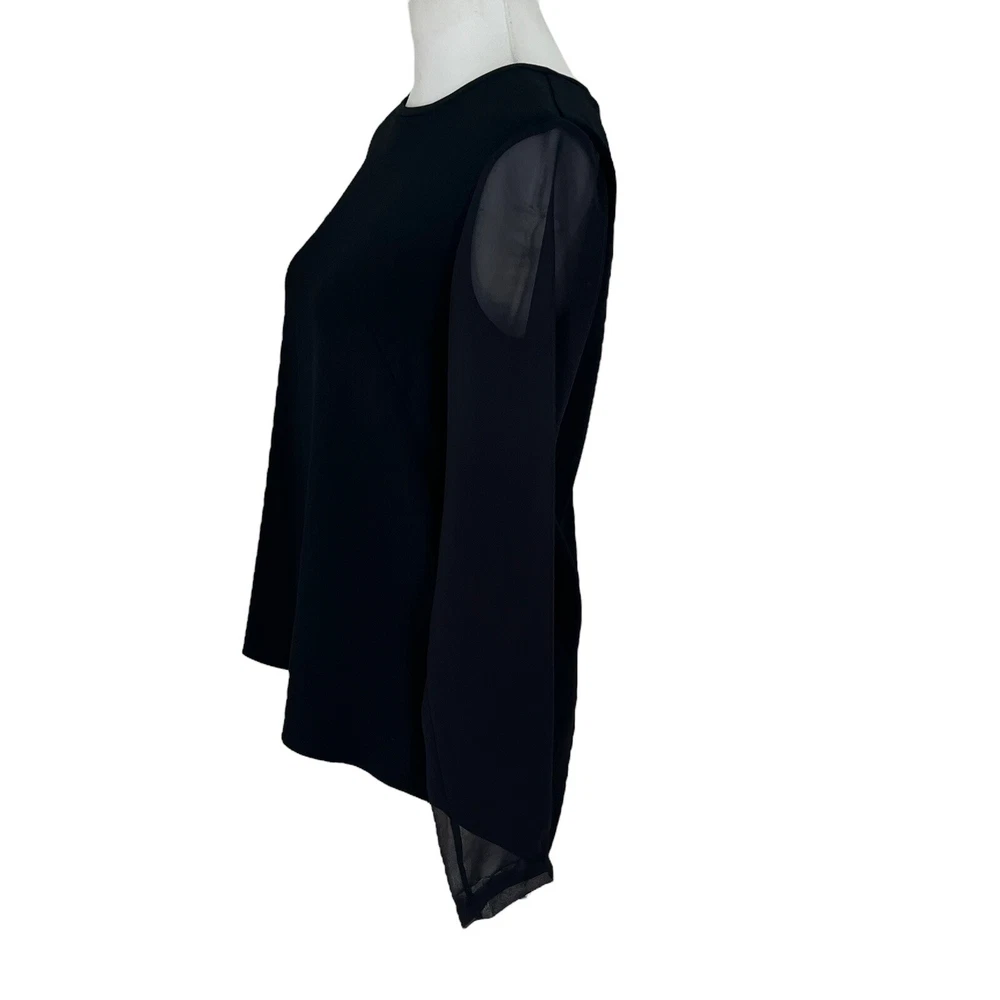 Rag & Bone Crepe Boxy Top Sheer Long Sleeves Black Blouse Womens Size S Boxy oversize style top by Rag & Bone. High scoop neckline. Long sheer sleeves. Loose silhouette. Approximate Measurements taken flat:pit to pit 17.5, length 23-26 Pre-owned; in excellent condition. No rips, stains or holes. Please see all photos for condition details.