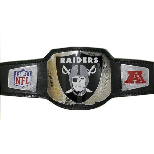 Welcome to our shop ------------------------------------------- We are specialist in manufacturing handmade products:: Our wide range of products include: >>>>Championship Belts WWE | WWF | AEW | UFC | WBC | WCW Product Description ** Raiders Championship Belt *** Plate Metal: Brass (Zinc available on request with additional cost) Strap: 100% Leather Largest Waist Size: Fits upto 46'' Belt Length: ~50" Weight: 6.17 lbs | 2.81 Kg Plate Thickness: 2mm (4mm Version available on demand with additional cost) ::The belt is well crafted and manufactured to meet the quality demands of fans:: Get your hands on this marvelous piece now! Note: If you need further details kindly inbox us, we will try to be as responsive as possible. ------------------------------------------- Return Policy: Generally we don't have much complains on our products and we make sure to 100% satisfy our clients. We send the product in well Bubble Wrapped packaging so there is highly unlike chance of getting damaged item. In case there is a damage, we will try to give partial refund or you can ask for full refund within 30 days after returning the belt to origin. NOTE: 1. If you have placed the order by mistake or you have purchased a wrong item then we are not going to refund that. 2. Buyer will pay the shipping fee of returning the belt. ------------------------------------------- Happy Shopping! :)