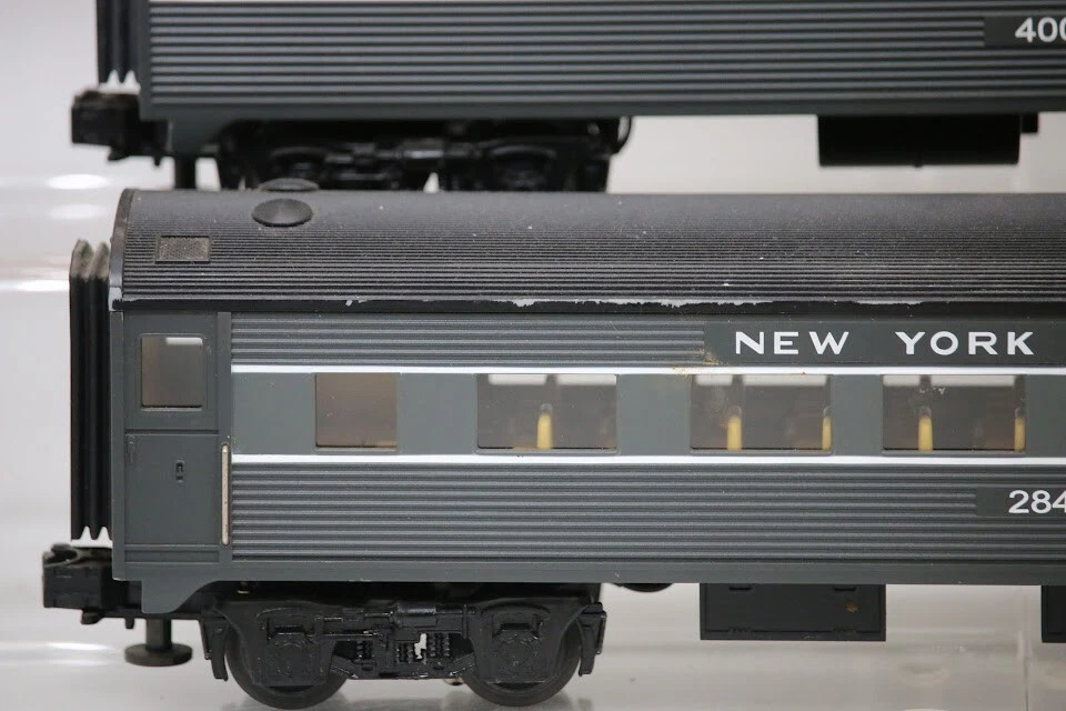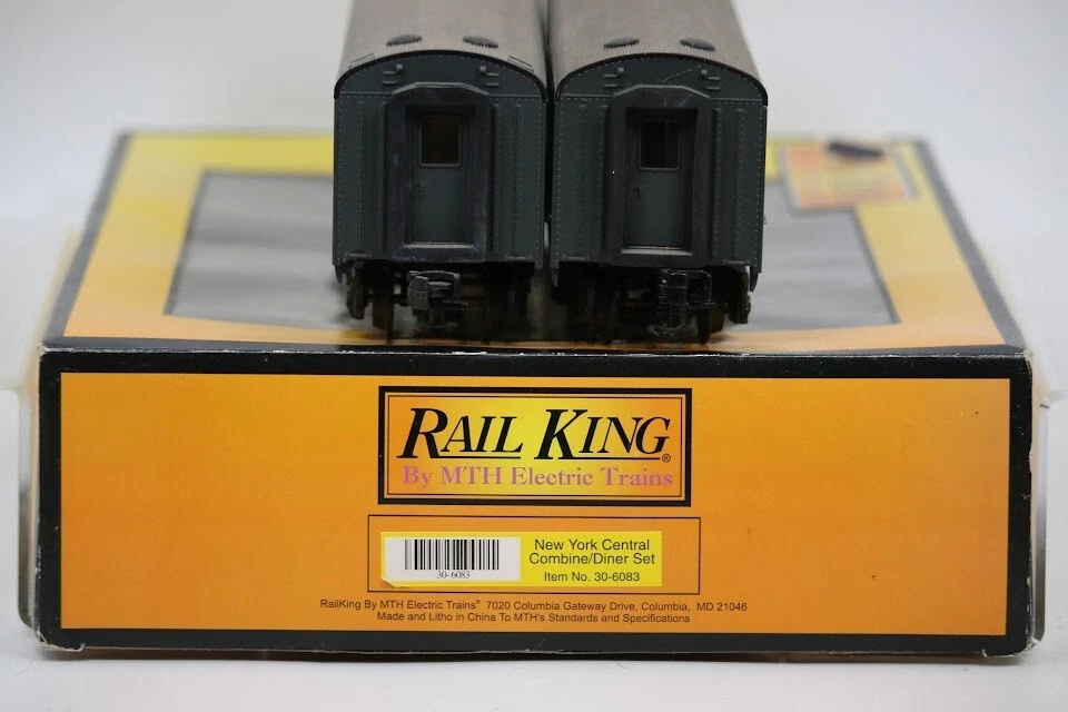 Rail King by MTH New York Central NYC Lighting Stripe Combine/Diner Set PLEASE READ BEFORE PURCHASING Condition: Please review all photos carefully for details on the item's condition. Photos are part of the description, and any notable flaws will be highlighted. Combined Shipping: If purchasing multiple items, request a revised invoice before paying to ensure accurate combined shipping costs. eBay's system may not calculate this correctly, leading to overcharges. Lighting Disclaimer: Photos are taken under bright lighting to highlight details, which may cause slight variations in color or hue depending on your lighting. If you need additional photos (e.g., in natural light) or more details, please ask before purchasing. As-Is Items: Items come AS-IS. The way they appear in our pictures is how the Item will arrive to you. What's Included: Only the items shown in the photos and described in the listing are included in the purchase. We strive to describe items thoroughly and provide clear photos. If you have any questions or concerns not addressed in the listing, feel free to ask before purchasing. Thank you for shopping with us!