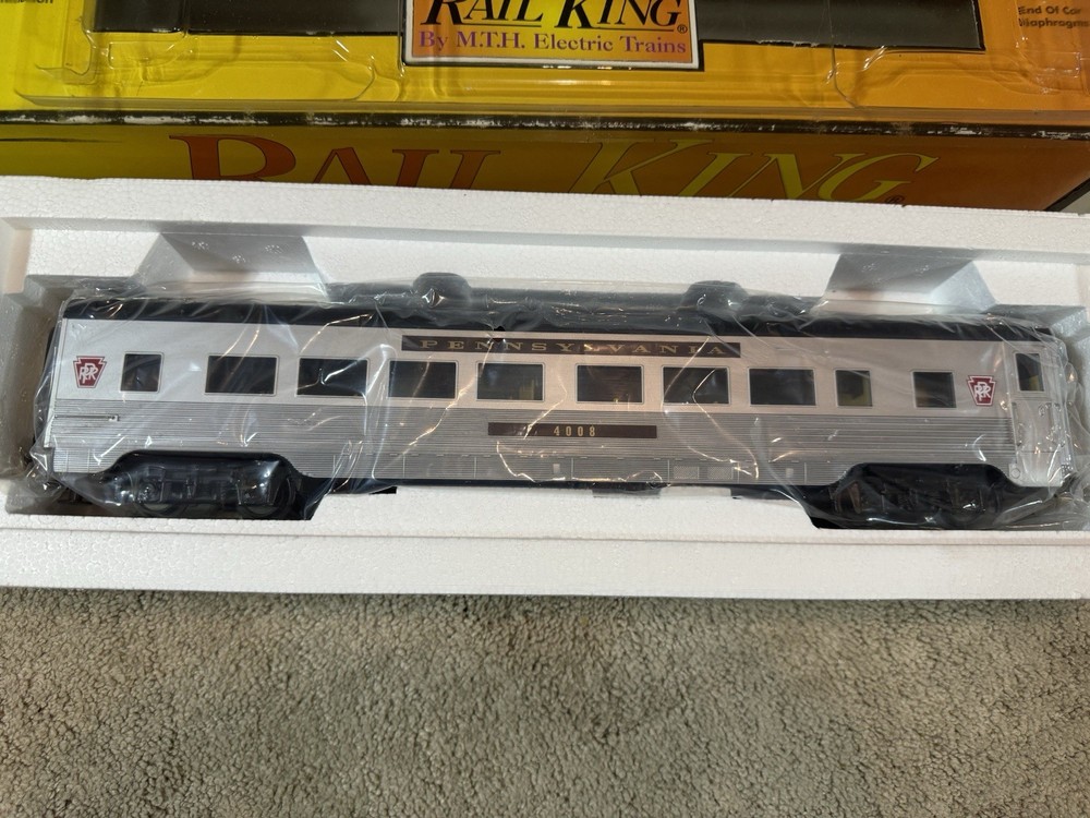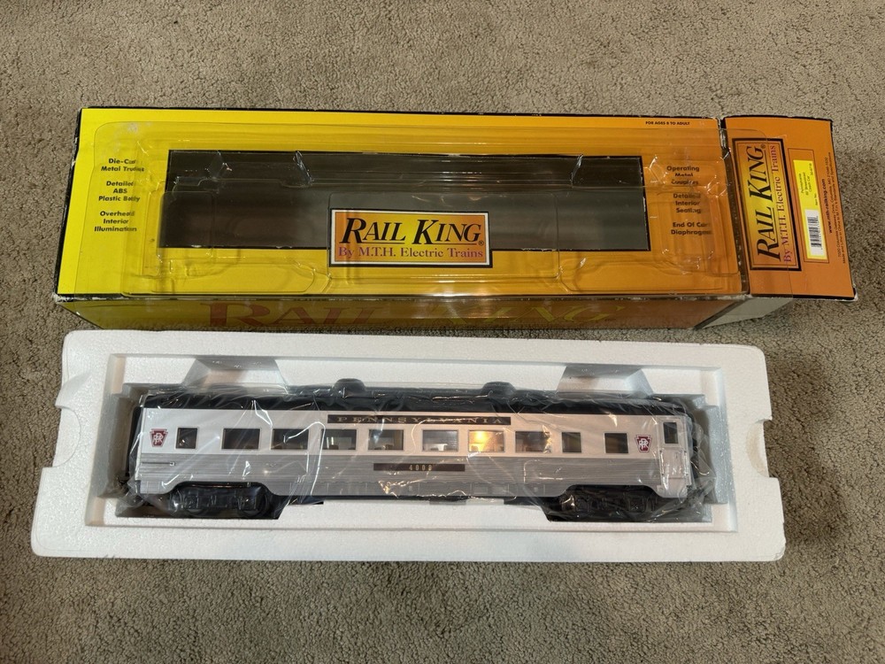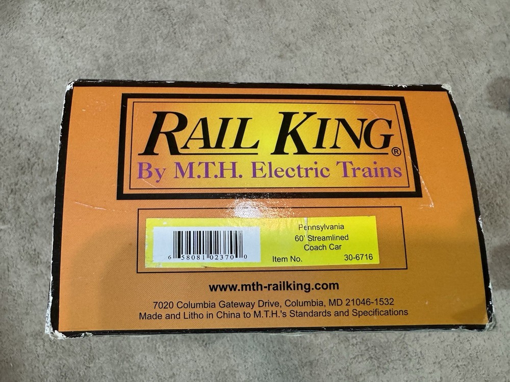 Rail king o gauge Pennsylvania 60 foot streamed line coach car item number 30-6716. Car is new in box still in plastic. Box does show where from storage I’m also selling the other two car set in my other ad. If you have any questions, please feel free to message me. Thank you and have a good good day day.