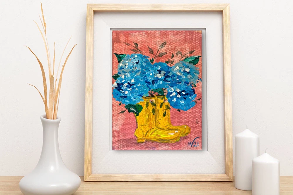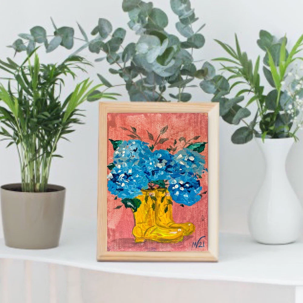 Title Wall Art "Rain Boot" Materials: high quality acrylic paints, canvas panel Original Artwork Shipping: high-quality protective packaging with tracking number On the front and back sides of the textured wall art - the author's signature. Fast Order Processing Happy Shopping