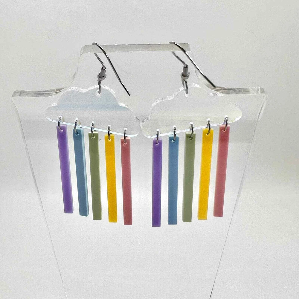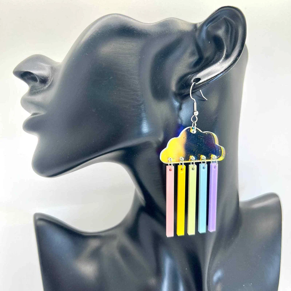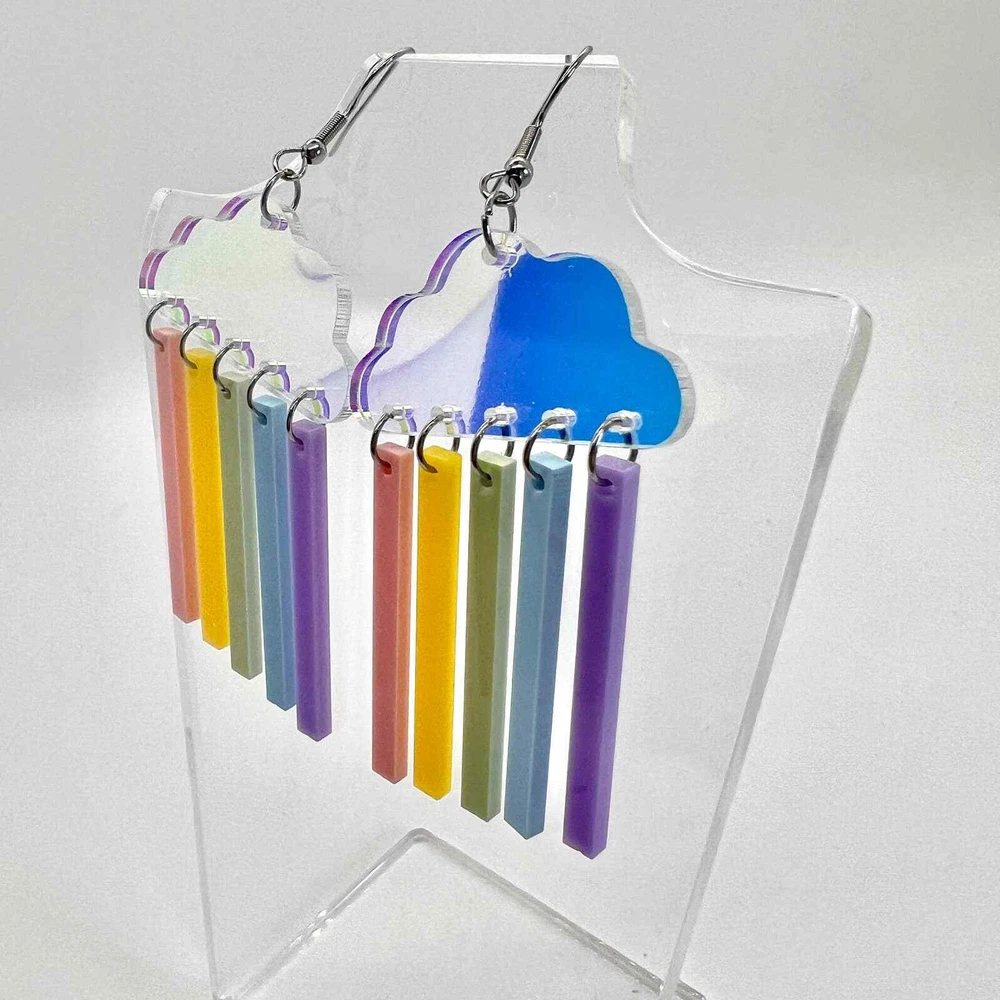 These earrings are made of acrylic with metal hooks. Clip-on hooks are available upon request during checkout. All earrings are handmade and ship within 1-3 days of purchase.