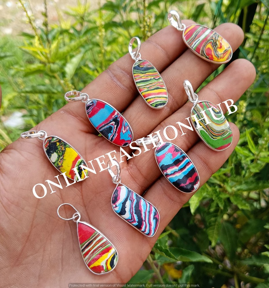 Rainbow Calsilica Gemstone 925 Silver Plated 100-Piece Handmade Bezel Pendant Lot