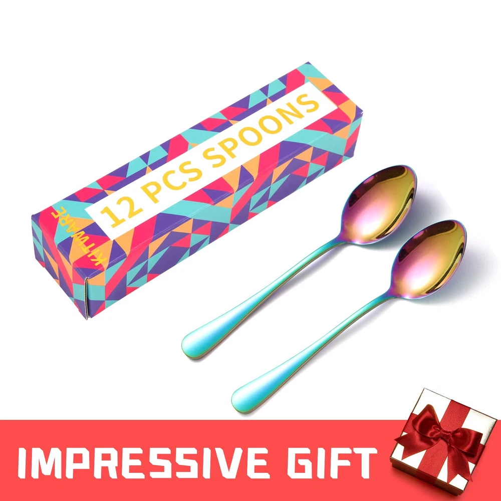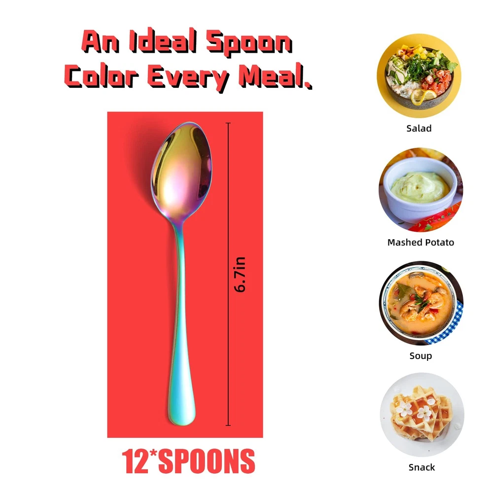 ✅Where Are All The Spoons?--Do you usually searching for tablespoon? Yes, somehow metal spoons are disappearing around the appartment. So people do need spare spoons. sturdy table spoons set of 12 pieces will help. They are nice and substantial, and the good quality does last long. With nice size, the kitchen spoon is ideal for everyday utensils, as well as formal dinners. Such as gathering, dinner party and Holiday. ✅Shape/Balance + Price = Perfect!--All kitchen utensil spoons are in excellent. Perfect balance of toughness with simple elegance. The Kitchen spoons are attractive and feel good in hand. Nice set with thrifty price.They are oval and make a great metal spoon for chowder, oatmeal, soup or cereal, cake, or stirring and mixing spoons.Work as dessert, coffee, salad, appetizer, dinner.GREAT SET OF SILVERWARE SPOON to have with TEENAGER in the house. ✅Premium Quality and Size --The tea spoons are made of food grade 18/0 high quality stainless steel, mirror polished and edges smoothen for a pleasant using. These stainless steel spoon is rust-proof and hefty enough to not bend when digging ice cream or watermelon. The spoon size is 6.7 inch, ideal work as a dessert spoon. A decent spoon that can live in your standard lunchbox, too. ✅Enjoy Modern Kitchen Silverware Spoons -- The decent soup spoons stainless steel enable enjoy meals in ease. It does not look or feel cheap. You will get compliments when your people sees your flatware spoon set. Make a worthy investment which not only cost effective, but a useful tableware set you will appreciate. The utensil cutlery set is DISHWASHER SAFE. ✅Buy with Confidence -- Whether you are buying a kitchenware set for yourself or as a gift for newlyweds or new apartment essentials for the first apartment, we are sure you'll love our modern flatware as much as we do. We craft our silver ware using only quality materials and focus on better designed. Our goal at is to provide our customers with premium products at an affordable cost, so you can better enjoy your comfortable life and leave the details to us.