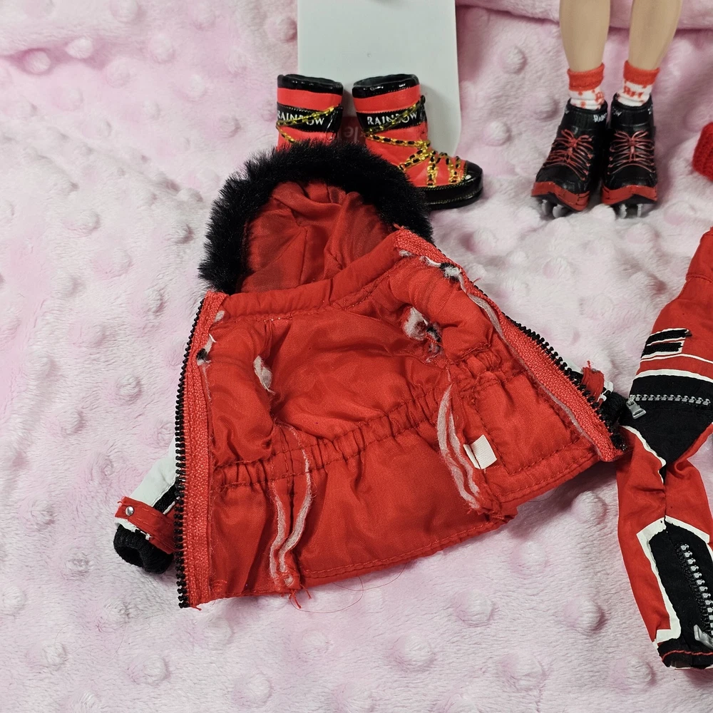 Rainbow High Winter Break Ruby Anderson Snowboard. Ruby comes with all her essential winter gear including sequined beanie, fluffy jacket, ice skates, winter boots and snowboard that have working bindings. Like new. Smoke free home.