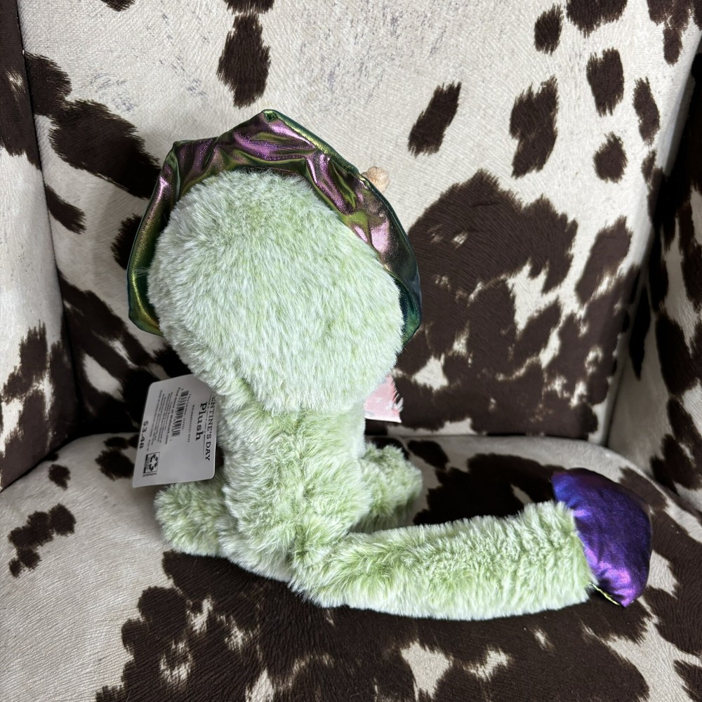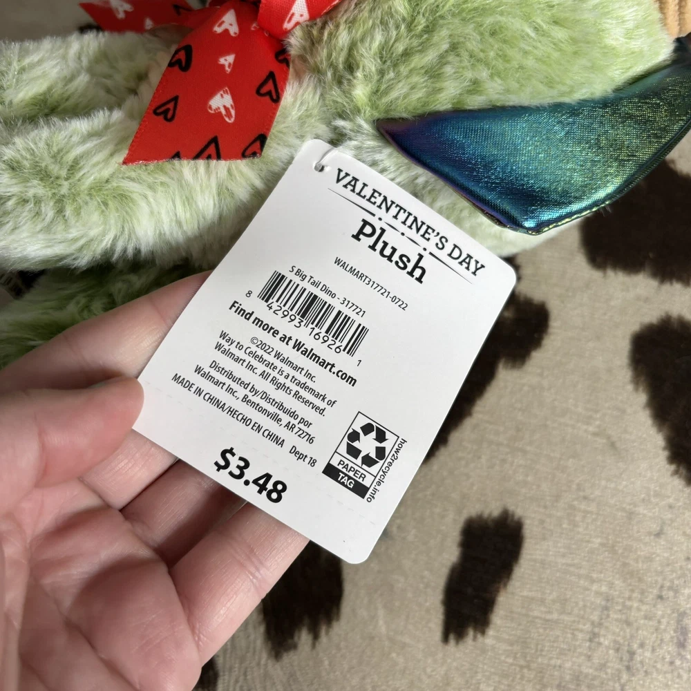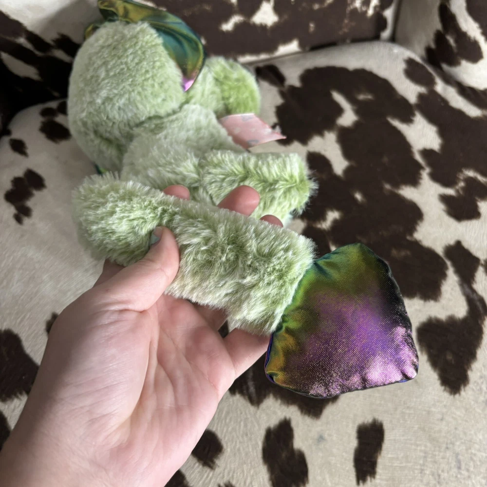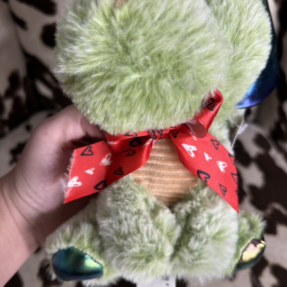 Way To Celebrate! Rainbow Holographic Ribbed Triceratops Valentines 7” Plush NWT Brand new with swing tags and tush tags intact. No tears/holes or stains on plush. Measures about 6.5”-7” tall. Light green triceratops dinosaur plush with ribbed beige horns, rainbow holographic spine and tail spike and a red ribbon/bow around its neck with hearts on it. One side of ribbon has light fraying.