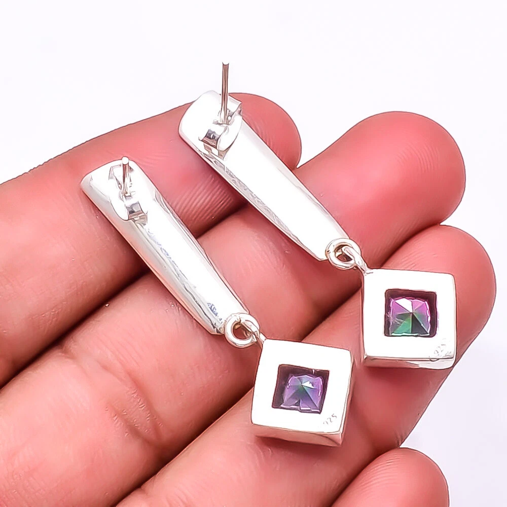 Theme Beauty Main Stone Depth As Seen in Picture Main Stone Length As Seen in Picture Main Stone Width As Seen in Picture Seller Warranty Yes Shape As Seen in Picture SKU E_9488_273_49 Main Stone Size 10x10 mm Antique Yes Handmade Yes Type Earring Style Drop/Dangle Metal Sterling Silver Metal Purity 925 Parts Per 1000 Base Metal Sterling Silver Total Carat Weight 28.5 Ctw Main Stone Rainbow mystic topaz Main Stone Creation Lab-Created Main Stone Shape Square Main Stone Treatment Lab-Created Material Gemstone, Stone Number of Gemstones 2 Item Length 1.95 Features Engraved, Nickel-Free, Handcrafted Ear Area Lobe Brand Unbranded Cut Grade Excellent Country/Region of Manufacture India Country of Origin United States Color As Seen in Picture Closure Hook Diamond Clarity Grade Not Applicable Number of Diamonds As Seen in Picture Item Diameter As Seen in Picture Gemstone Clarity Grade Translucent Diamond Color Grade Not Applicable Customized No Colored Diamond Intensity Not Applicable Certification 100% Genuine Guaranteed Setting Style Bezel Occasion Christmas, Birthday, Anniversary, Engagement, Wedding, Valen Shipping & Handling - Charge - 1st item-5.90 And Additional item-1.90 Handling Time - 1 Days . Delivery Time - 2 TO 3 DAYS. Shipping Service - USPS First Class Package 2 -3 Days. Returns - 1.We offer a 100% Money Back Guarantee minus shipping for 30 days after receiving the Item / item's. 2..The item must not be altered or damaged in any way shape or form. 3.Upon receiving these items your payment will be refunded. 4.Email us for return instructions before sending merchandise back. 5.Please allow up to 1 business day for all returns to receive credit. 6.Sizing does not affect the return policy. Payment - We accept PayPal for Payment ,should made with in 14 days once buying or winning done , in case of late information expected .