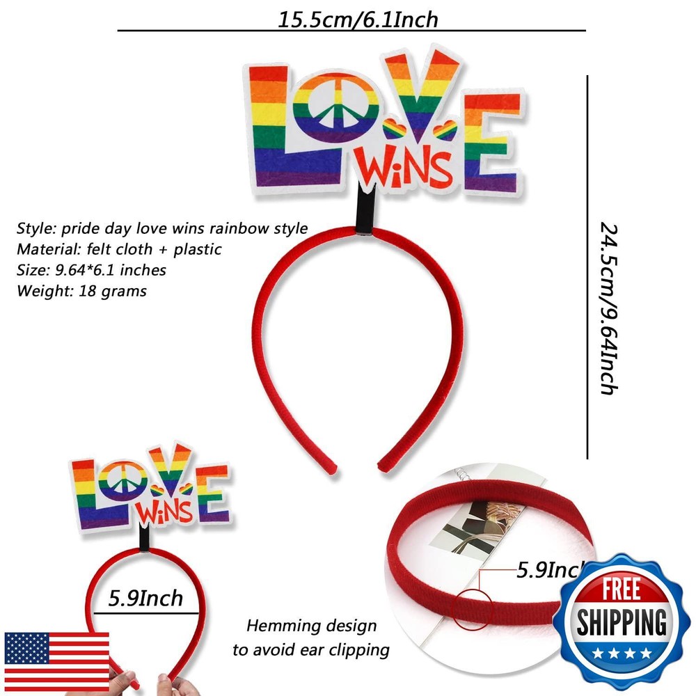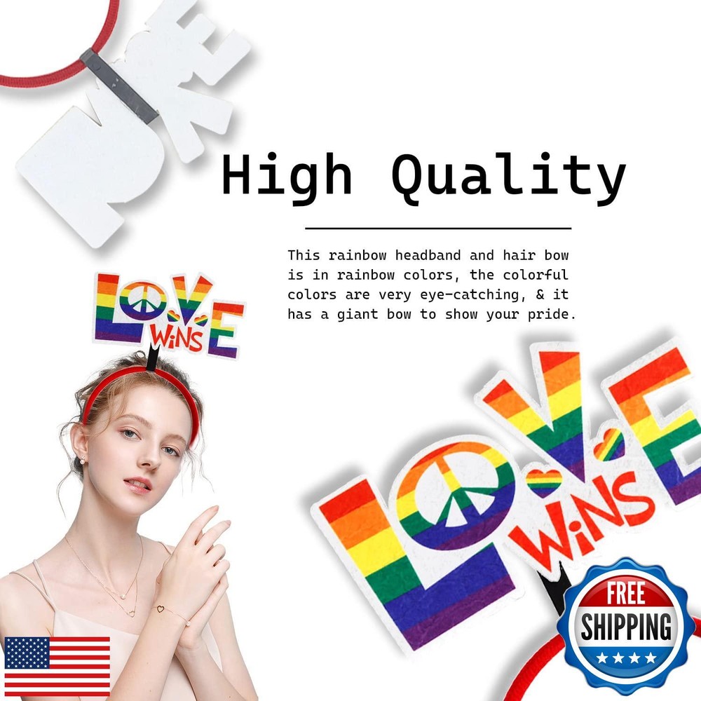 HIFANMM Pride Day Rainbow Love Hair Accessories Headband for LGBT DIY in Sweet Parade Party Supplies 1 Pcs Features 【Well Crafted】-- The Pride Day headband is made of cloth and plastic material, the plastic headband wrapped with cloth is elastic and durable, soft, and comfortable. 【Rainbow Elements】-- These headbands are designed with classic pride day elements, look eye-catching and lovely with bright colors, easy to cater to preference of gay and add LGBT festival atmosphere. 【Proper Size】-- Pride Day hairband about 9.64x6.1 inches. It is stretchable and suitable for most people's head shape, which can be worn by children and adults. 【Package Contain】-- You will receive 1 LGBT headband, and you can match your costume making you look fashionable and eye-catching. 【Widely Use】-- The rainbow headbands Suitable for many places, such as rainbow parades, pride parties, birthday parties, parties and other events, making you the highlight of the photo shoot. Shipping Free & Fast Shipping: We offer free shipping to most of the USA with a normal delivery time of 3-7 days. However, due to the current situation, additional delivery time (up to 3 weeks) may be required for some items. Alternative Carriers: We may use alternative carriers (e.g., USPS, FedEx, UPS) to ensure your package arrives safely and on time. Due to the use of multiple carriers, we are unable to provide a tracking number automatically. Handling Time: Orders are processed and shipped within 1-2 business days of receiving cleared payment. Shipping Restrictions: Shipping to Alaska, Hawaii, Puerto Rico, Guam, and other US territories may incur shipping charges or delivery restrictions. Please contact us before ordering, or your order can be refunded/cancelled. State Restrictions: Certain items may not be shipped to California due to state regulations. Contact for Tracking Updates: If you require tracking updates or have any concerns about the delivery of your order, please feel free to contact us, and we will be happy to assist you. Return Policy 30-Day Hassle-Free Returns: If you are not completely satisfied with your purchase, you can return the item for free within 30 days of receiving it for a full refund or exchange. Easy Return Process: Contact us, and we will provide you with a prepaid return shipping label and detailed instructions. No Restocking Fee: There are no restocking fees for returns. However, the buyer is responsible for return shipping costs if the return is not due to a seller's error. Refund Processing: Refunds will be processed within 1 business day of receiving the returned item in its original condition. Payment We accept all major credit cards, PayPal, and Apple Pay for your convenience. Your payment information is secure and encrypted to ensure a safe and seamless transaction. Please complete your payment within 3 days of purchase to avoid any delays in shipping. Feedback Your feedback is extremely important to us. We strive to provide the best products and customer service possible. If you are satisfied with your purchase, please take a moment to leave us a positive review. If you have any concerns or issues with your order, please contact us before leaving negative feedback. We are committed to resolving any problems and ensuring your satisfaction. Contact Us If you have any questions or concerns, please feel free to reach out to our customer support team. You can contact us through the eBay messaging system. We are available Monday to Friday, 9:00 am to 5:00 pm EST, and we will do our best to respond to your inquiry within 24 hours. Thank you for supporting our small family business!