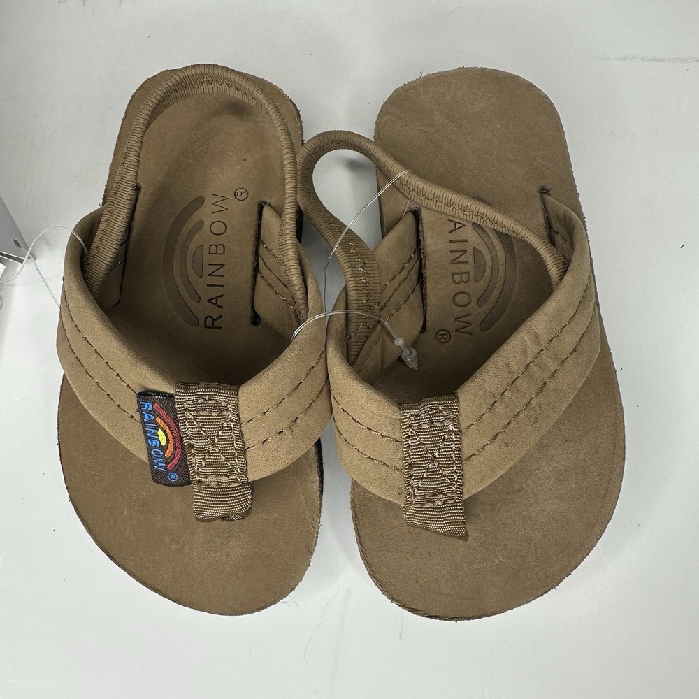 Rainbow Sandals Kids Unisex Leather Single Layer With Heel Strap Brown Size 3/4 Brand new w/ tags!