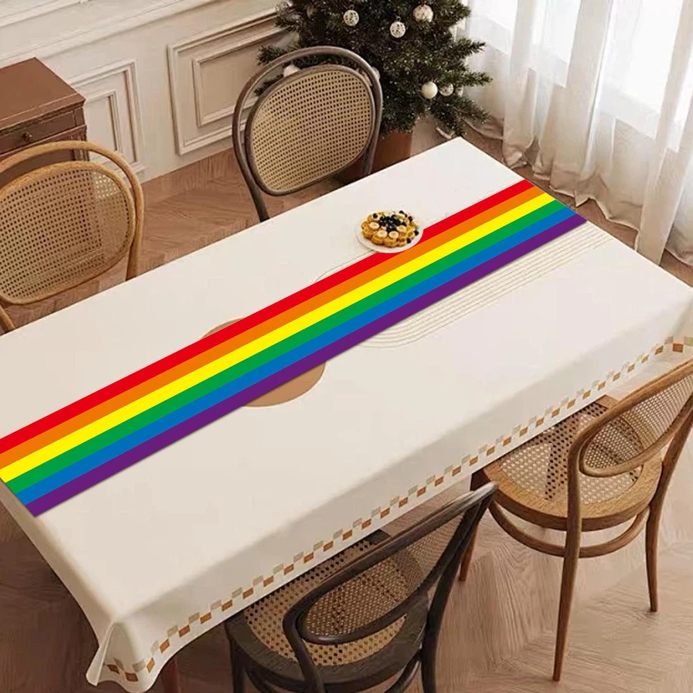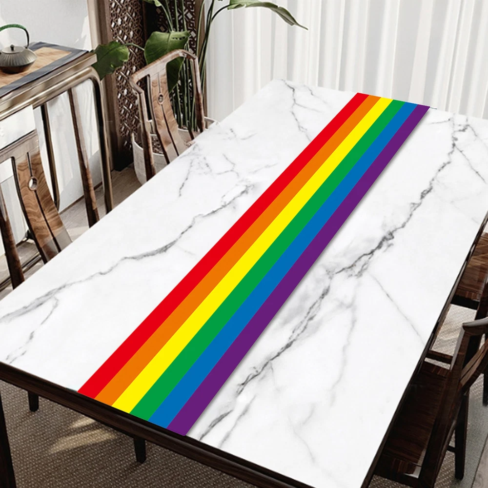 High-quality Material: Crafted from high-quality Oxford cloth, this rainbow table runner ensures a vibrant touch to your decor; reusable, it resists fading, promising long-lasting beauty. Easy to Clean: This vibrant rainbow table runner, easily hand washable and ensured to retain its size and color, simplifies your cleaning routine. It will not shrink when washed. Bright Decoration: Seamlessly enhancing your dining experience, this rainbow table runner infuses any setting with a rustic charm and a progression of bright, uplifting colors for a truly warm decoration. Wide Range of Applications: Decorate your celebration with our rainbow table runner, perfect for Pride Day festivities, and birthday bashes, and versatile enough for daily dining. Perfect Gift Choice: Decorate your table with this colorful rainbow table runner, the perfect present to elevate parties and holidays with vibrant charm. Make a statement with our rainbow tablecloth! Perfect for Pride Day party tables, kitchen tables, and more. With bright colors that pop, it adds to the atmosphere. Made of reusable materials, it's easy to clean and perfect for indoor and outdoor use. Specification: Product Material: Oxford cloth Product Size: about 35x180cm/13.78x70.87 inches Product Weight: about 140g Product List: 1* Rainbow Table Runner Notes: Due to the lighting effects and filming angles, there is a color difference in the product, please understand. Due to manual measurement, there is a tolerance in the product size. The actual product shall prevail, thank you!