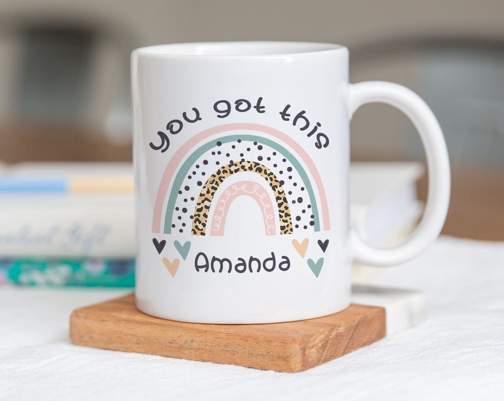 You Got This Watercolor Rainbow Inspirational Quote Best Friend Gift Product Details.. This high quality 11oz. ceramic white mug has a premium hard coat that provides crisp and vibrant color reproduction sure to last for years. Perfect for all hot & cold beverages. The highest quality printing possible is used. It will never fade no matter how many times you wash it. Material: 100% Ceramic. Print both sides. Dishwasher and Microwave Safe. High Gloss + Premium White Finish. Printed in the U.S.A. Personalized & Custom. We support personalized and custom mug to add custom, when placing an order, you can add notes to the "order note" in shipping address section. Also you can contact us directly via message. Shipping Info. Ready to ship in 1 to 2 business days, All products are made-to-order and proudly printed in the United States. Shipped by USPS and DHL, You will receive your order in 5-7 days. Replace & Refund. All products are defective during shipping broken, chipped will be replaced free of charge. You are not satisfied with the product, we will refund 100% money to you. If any other issues arise, please do not hesitate to message, we would be more than happy to assist you.
