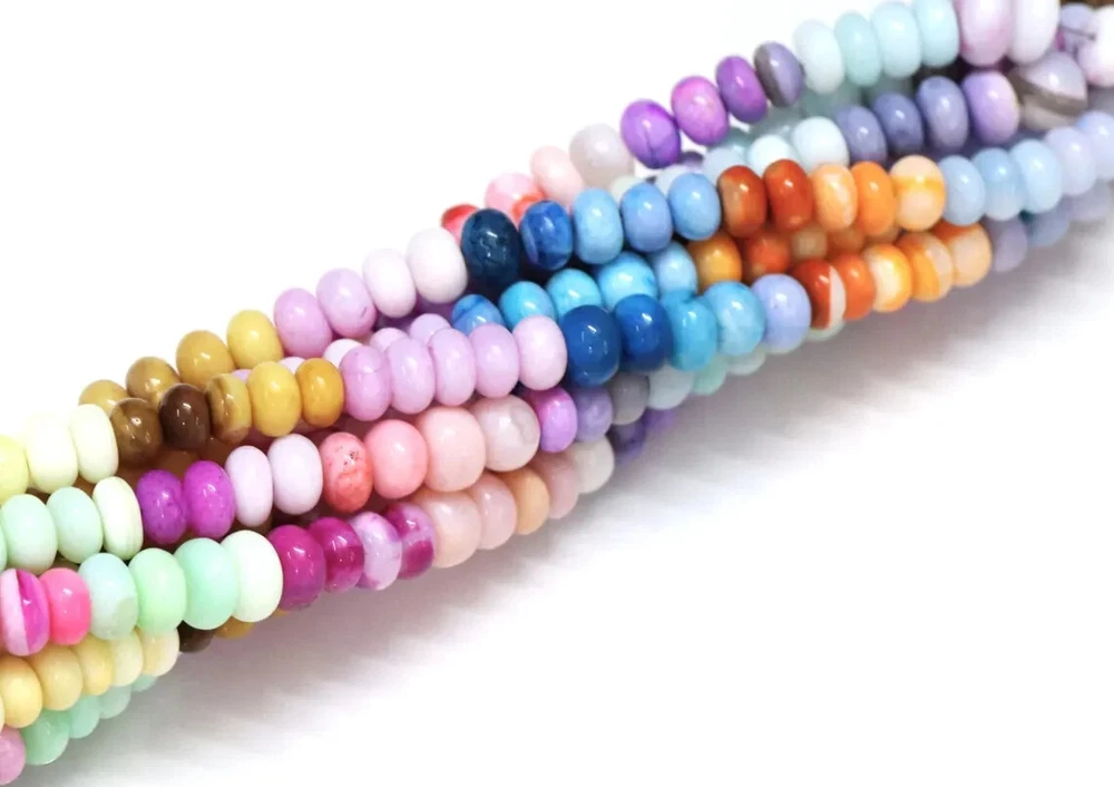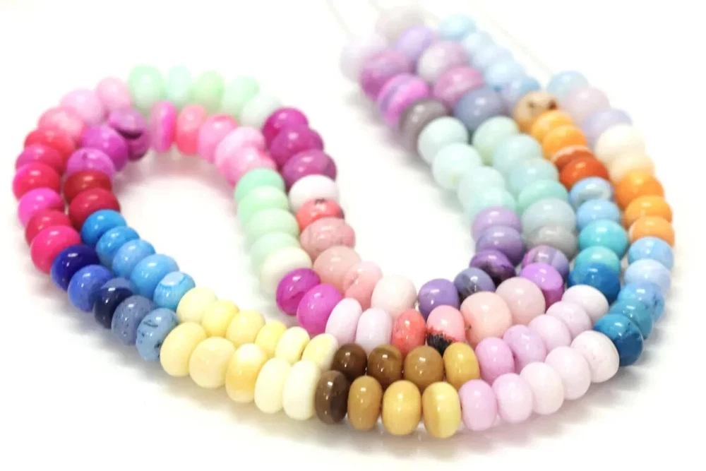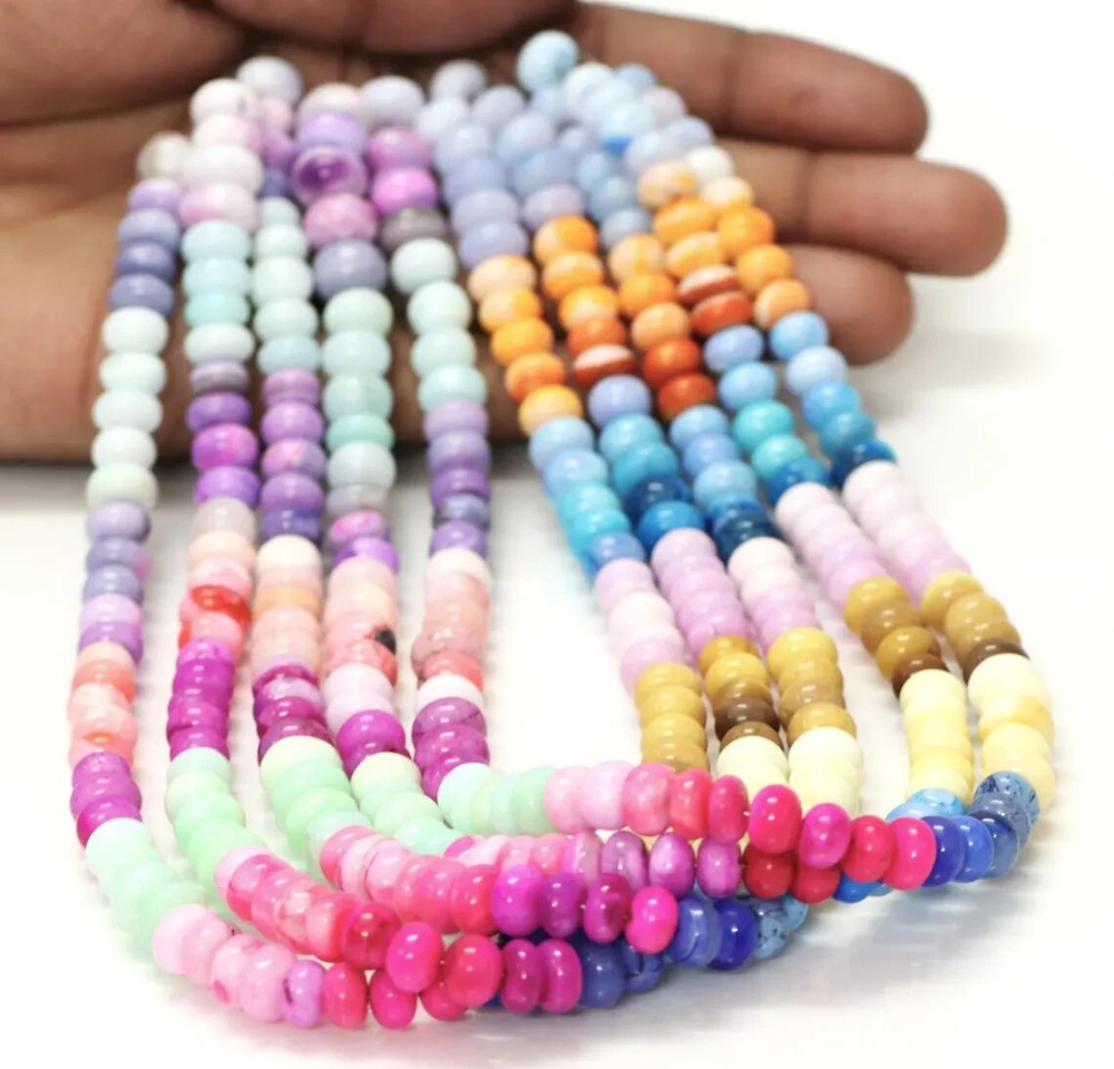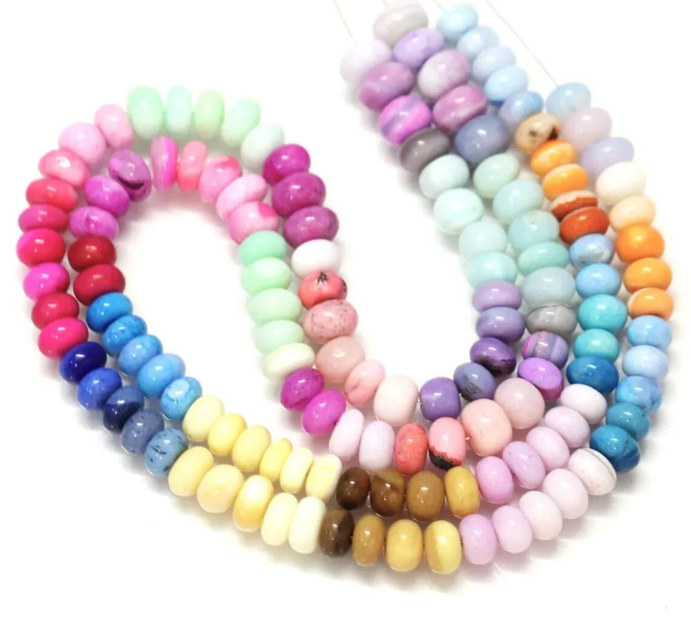 Made by Radhikagemsnbeads Supplies for making crafts Delivery from a small business in India Materials: Gemstone Bead hole size: .50 millimetres Beautiful Rainbow shaded opal smooth rondelle shape beads, 7-10mm Multi color shaded Opal gemstone Beads, AAA quality opal bead jewelry craft Gemstone : Opal Color : Rainbow color shaded Size : 7 mm to 10 mm approx. Shape : Rondelle Style : Smooth Handmade Beads Quality : AAA For : Necklace, Jewelry Design, Craft Making, Gift,Etc. Length : 7 / 15 Inches