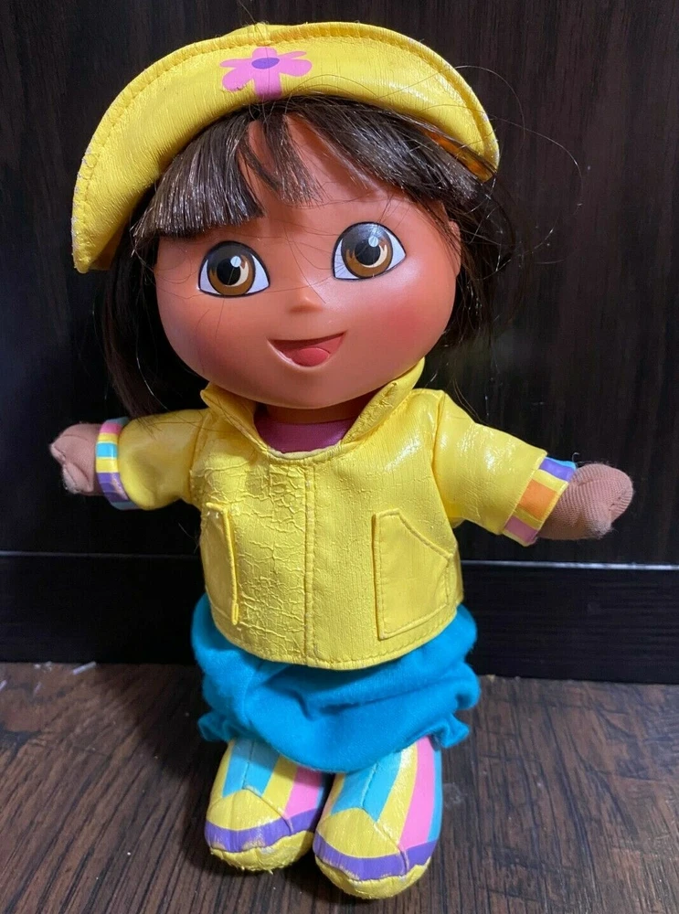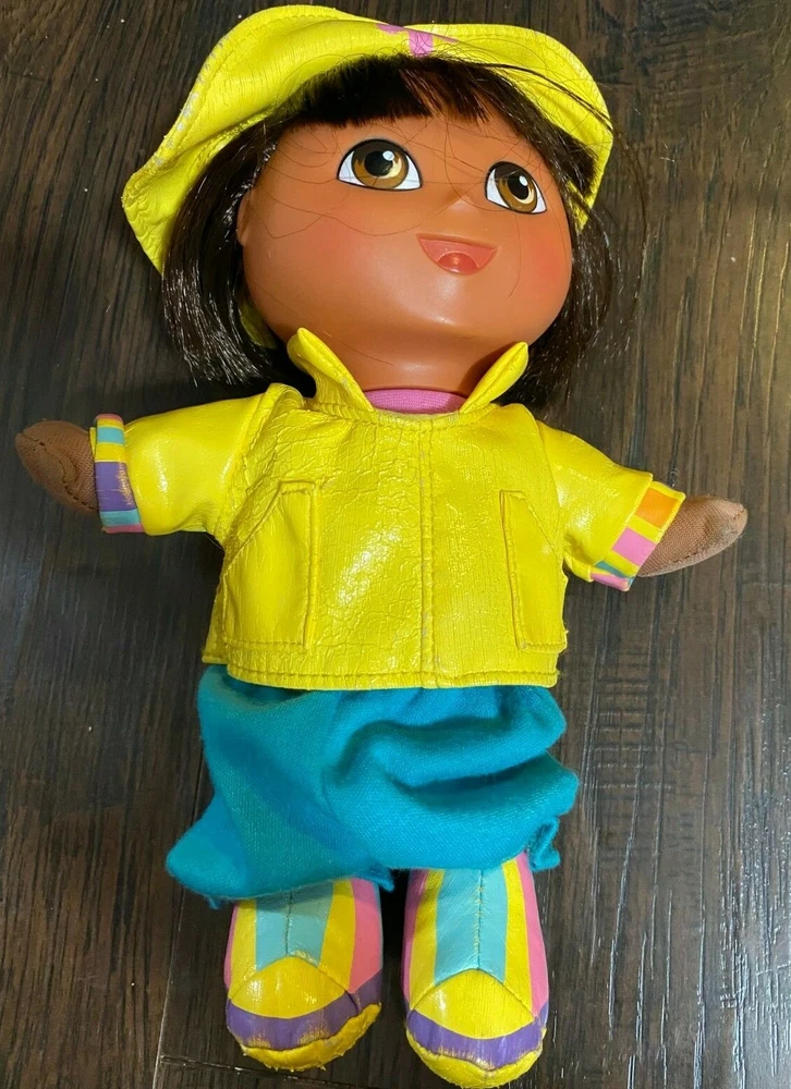 Rainy Day Dora the Explorer Plush Doll 9" Vinyl Face Raincoat Fisher Price 2004