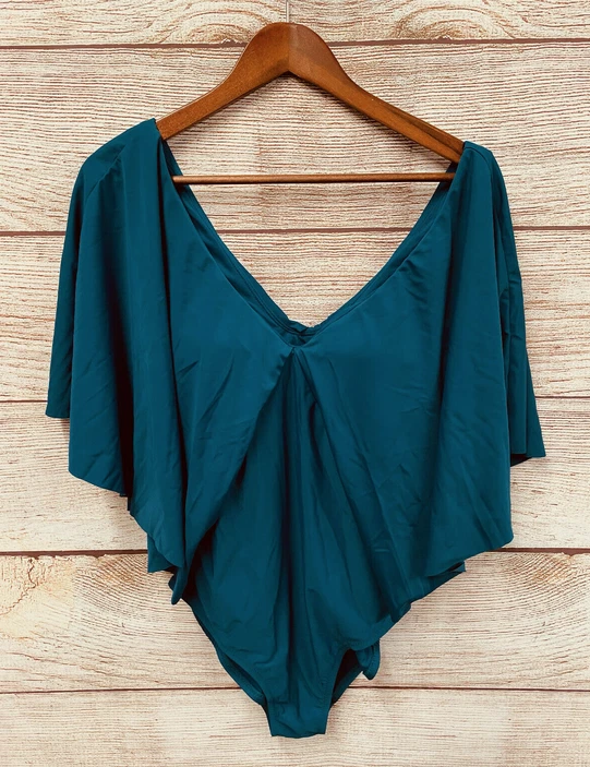 Chest has thin built in padded bra. The official color is Navy, but the suit is not Navy Blue. It is a deep teal. Retails for $98